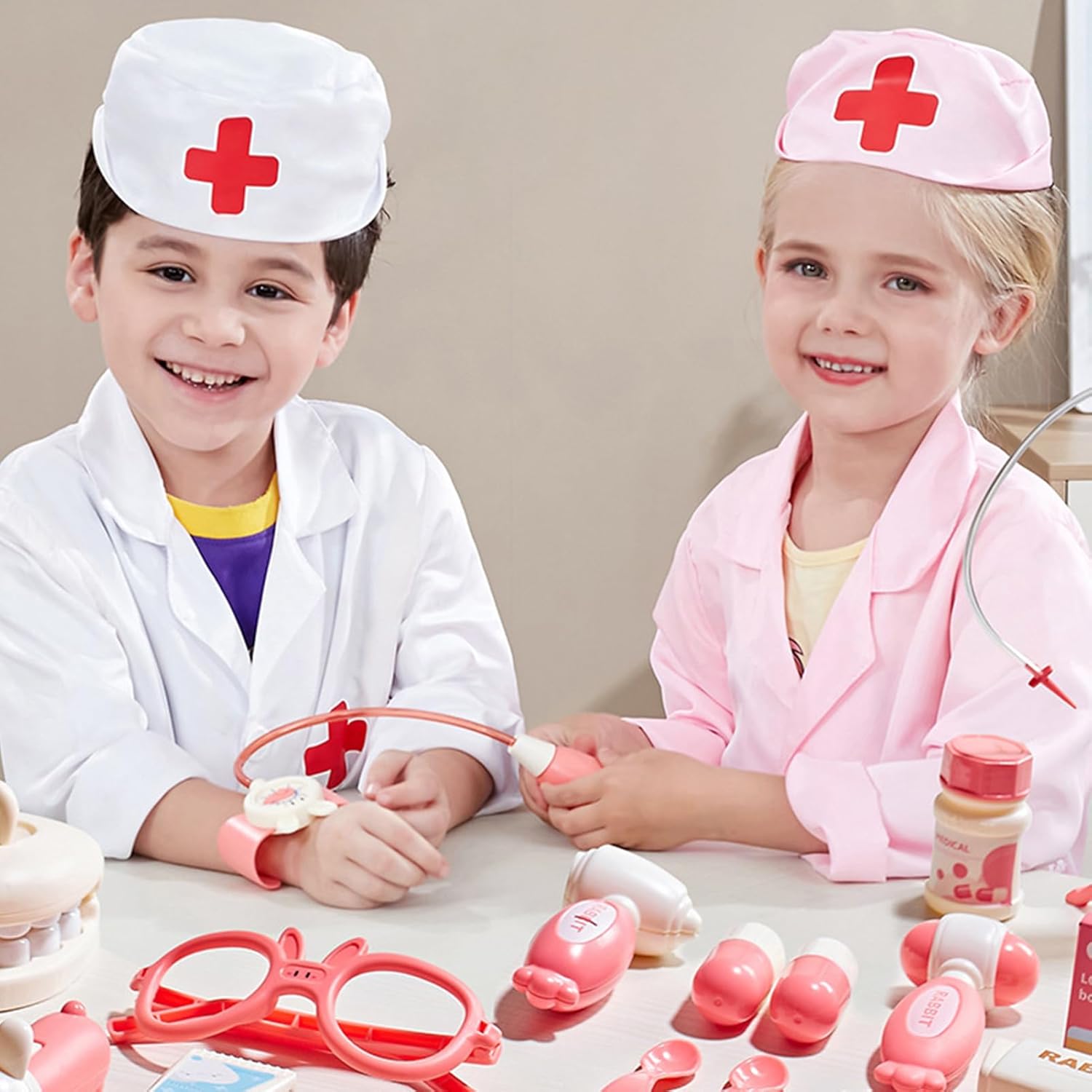 Kit educativo versatile: lascia che il tuo bambino sia un medico o un set di giocattoli per pediatra. È un kit educativo con stetoscopio, denti e bottiglie mediche, che, tra le altre cose, contribuiscono a promuovere empatia e responsabilità divertendosi. Eccellente artigianato: questa splendida versione del set di giocattoli per pediatri è realizzata con squisita fattura e lavorazione eccellente per garantire che non si ferisca alla mano o scavare sulle superfici. Mobile e peso leggero: divertiti all'aperto con il set di giocattoli per pediatri e il suo design innovativo della valigia. Ideale per uso interno ed esterno, basta afferrare e godersi un tempo di gioco senza problemi. Regalo eccellente: questo set di giocattoli per pediatri è un modo fantastico per incoraggiare giochi fantasiosi e creatività nei bambini. È un ottimo regalo per il Ringraziamento, Natale, compleanni o qualsiasi vacanza speciale per sorprendere e deliziare i giovani. Divertimento ed educazione Il set di giocattoli per pediatri è unico con il suo giocattolo a spruzzo che simula una vera siringa e una molla integrata che rimbalza automaticamente. Guarda come tuo figlio ha un modo unico e divertente per superare l'ansia mentre apprendi le visite dal medico.