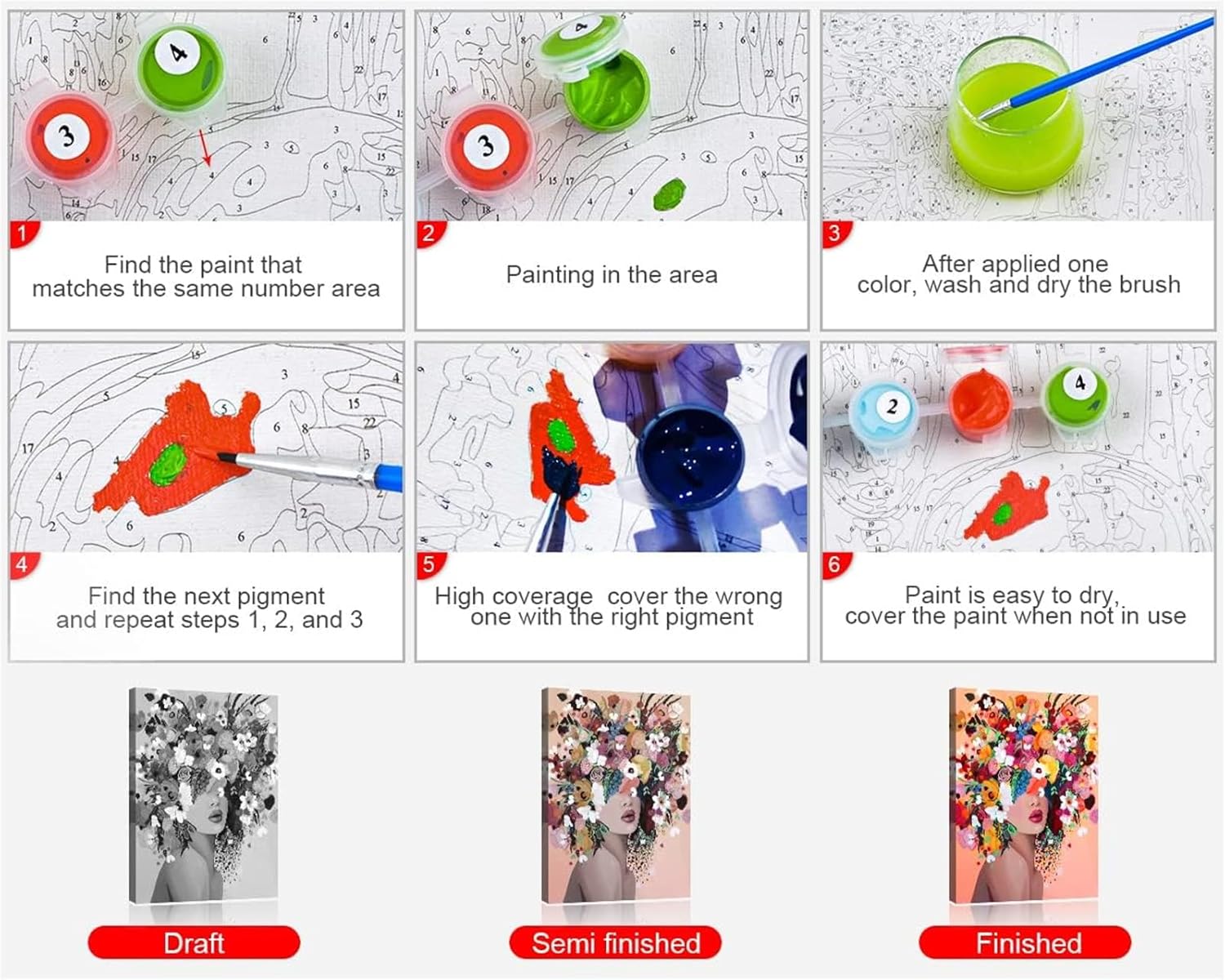Adattabilità: Questa bella tela di numeri è ideale per bambini, adolescenti, adulti e anziani. Lavorare insieme su pittura da numeri per progetti adulti con amici e familiari. Un singolo dipinto può essere completato in un paio di giorni. Come dipingere per numero? 1. Abbina il numero della vernice e la figura sulla tela per riempire la vernice. Puoi decidere il turno del disegno in base al tuo favore personale o a turni dei numeri. 2. Per la vernice bianca e l'altra parte di vernice di colore chiaro, le figure lasciate sulla tela possono essere viste, si può usare due volte la vernice e provare a coprire con la vernice spessa. 3. Utilizzare la vernice direttamente e non aggiungere acqua. Si prega di coprire bene il coperchio della vernice quando non lo si utilizza, nel caso in cui la vernice si asciuga. Se la vernice si asciuga, puoi aggiungere 2-3 gocce d'acqua e mescolare la vernice. 4. Se non ti accorgi di riempire un colore sbagliato, puoi aspettare che la vernice si asciughi e poi coprire la parte sbagliata con il colore corretto. 5. Lavare il pennello in modo pulito ogni volta che finisci di dipingere per il prossimo utilizzo e ogni volta che cambi un altro colore. 6. Se vi capita di ottenere la vernice sui vostri vestiti, si prega di lavarlo immediatamente. 7. Le figure sulla tela potrebbero non essere coperte interamente, spero non vi dispiaccia. 8. La vernice che offriamo è sufficiente per l'uso normale, si prega di non sprecare per prevenire la carenza di vernice. Nota:(senza cornice) La vita non è a corto di bellezza, ciò che manca sono gli occhi per scoprire la bellezza, l'arte è intorno, tu sei il prossimo artista, credi in te stesso.