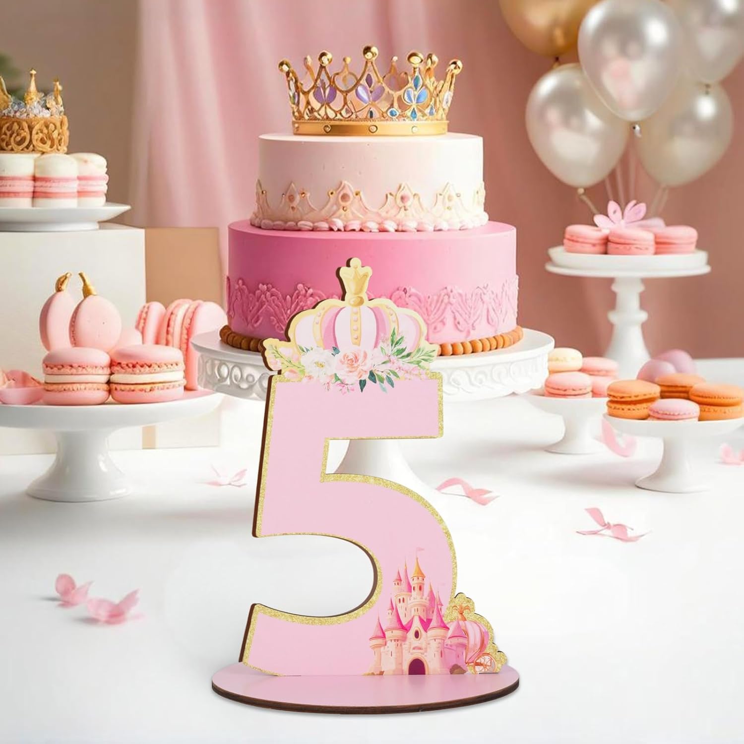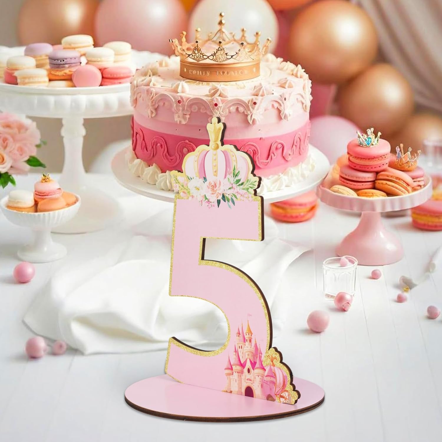 Principessa 5° compleanno numero segno Centrotavola, Her Royal Fiveness a tema tavola in legno decorazione rosa glitter oro, cinque anni feste di compleanno foto puntelli forniture Decor