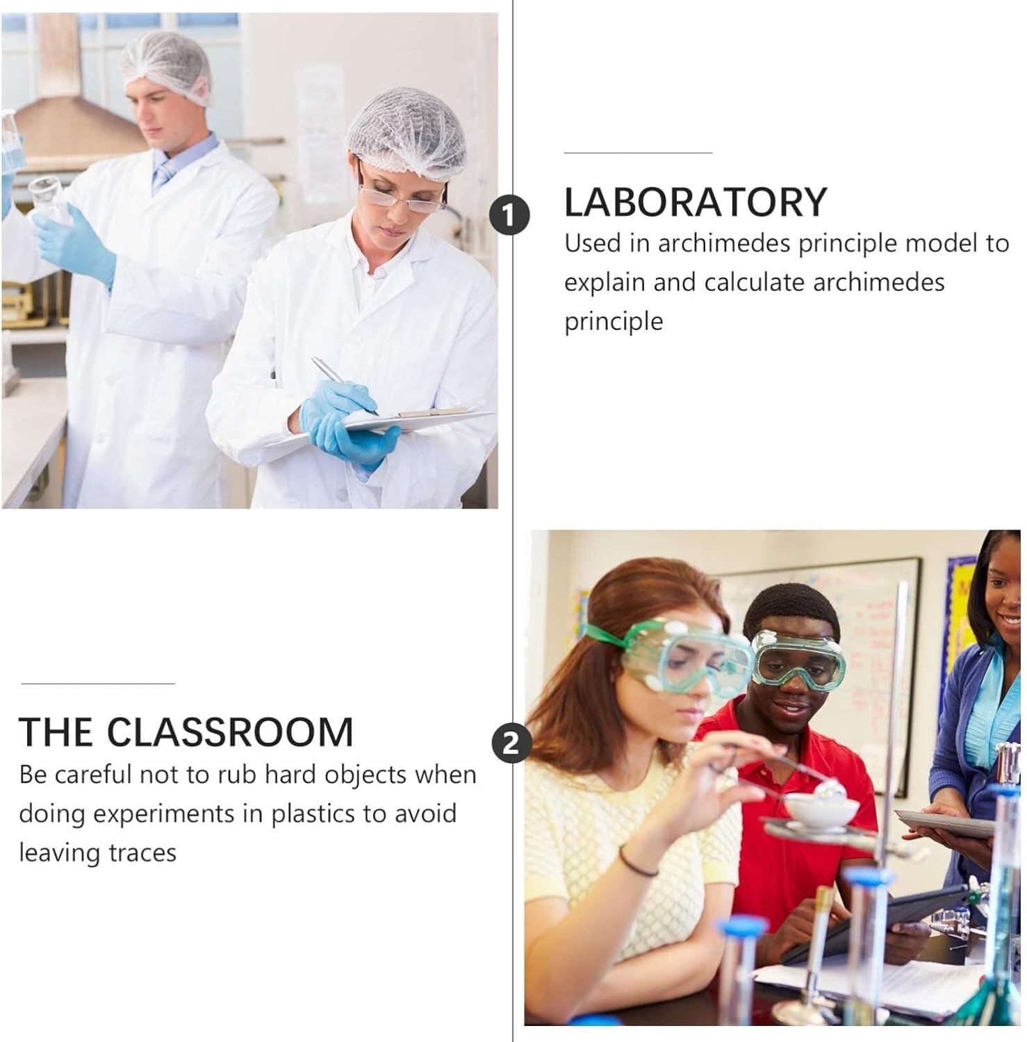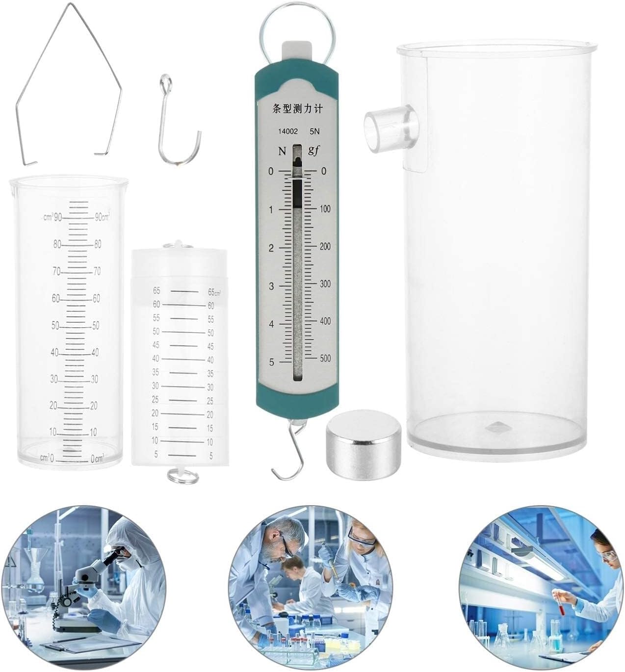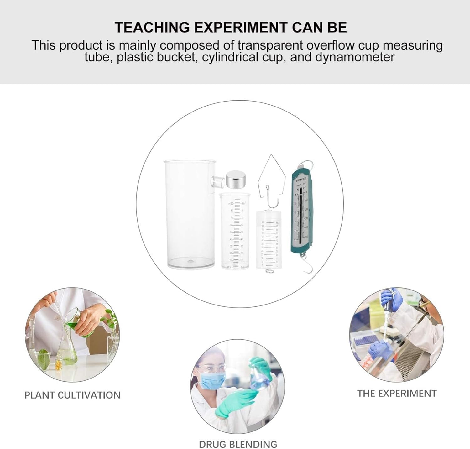 Quando si fanno esperimenti con la plastica, fare attenzione a non strofinare oggetti duri per evitare di lasciare tracce. Lo sperimentatore del principio di Archimede è utilizzato principalmente nell'insegnamento della fisica nelle scuole medie. Per esplorare le relazioni tra la galleggiabilità e l'acqua scaricata. Utilizzato nel modello del principio di Archimede per spiegare e calcolare il principio di Archimede. Questo prodotto è composto principalmente da un recipiente di troppo pieno trasparente, un tubo di misurazione, un secchio di plastica, un recipiente cilindrico e un dinamometro.