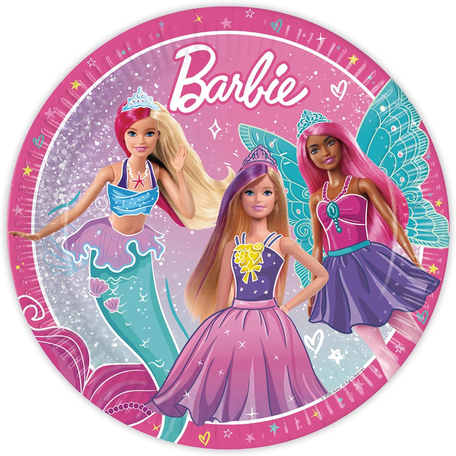 Il set multipezzo per feste di Procos è l'ideale per tutte le fan di Barbie Il set contiene 2 x 8 piatti, 2 x 8 tazze e 1 x 20 tovaglioli in carta FSC-mix Decorate la tavola con questo colorato servizio da tavola per feste di Barbie I bellissimi motivi portano il buon umore alla festa di compleanno Il set può essere combinato con altre decorazioni per feste di Procos
