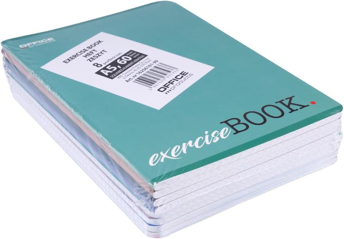 Prodotti per ufficio 16256161-99 Quaderno scolastico Copertina morbida. Formato A5 fogli quadretti 60/60. Set da 8 - 8 pezzi. Per i giovani/bambini per il rientro a scuola degli alunni delle scuole primarie. Quaderno a quadretti con copertina laminata Formato: A5. Numero di fogli: 60 Piastrelle blu: Carte bianche 5 x 5 mm