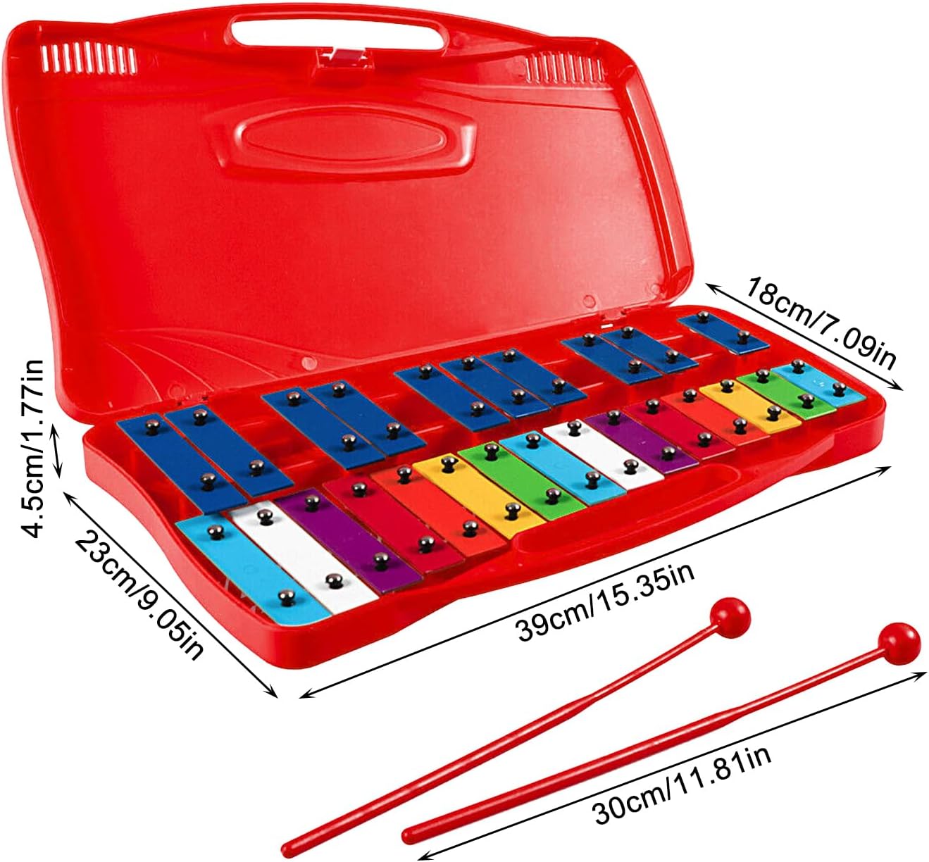 Preparali per il successo: avvia il percorso di gioco dei bambini con questo glockenspiel per il metal dei bambini, che può coltivare l'interesse e il talento musicale e aiutarli ad apprendere la conoscenza della musica. Eccezionale maestria: il nostro Glockenspiel per bambini in metallo vanta un'eccellente qualità del suono con 25 note accordate con precisione, che lo rendono strumento per i percussionisti in . Viene fornito con due bacchette per suonare comodamente. Accattivante creazione del suono: con il suo colore brillante e il design facile da trasportare, questo glockenspiel attirerà l'attenzione dei i bambini e ispirerà la loro creatività musicale; inoltre viene fornito con una delicata custodia per un comodo trasporto e protezione. Prestazioni affidabili: grazie al suo materiale in alluminio di alta qualità resistente all'usura, questo carillon per bambini in metallo produce note chiare e precise. La sua struttura resistente alla ruggine e robusta garantisce una lunga durata per il divertimento dei giovani musicisti. Migliora il talento musicale di figlio: sviluppa le abilità musicali e la creatività di figlio con questo Glockenspiel per bambini in metallo. Con particolare attenzione al divertimento educativo, questa è un'ottima idea regalo per compleanni e festività come Pasqua, Capodanno e Ringraziamento.