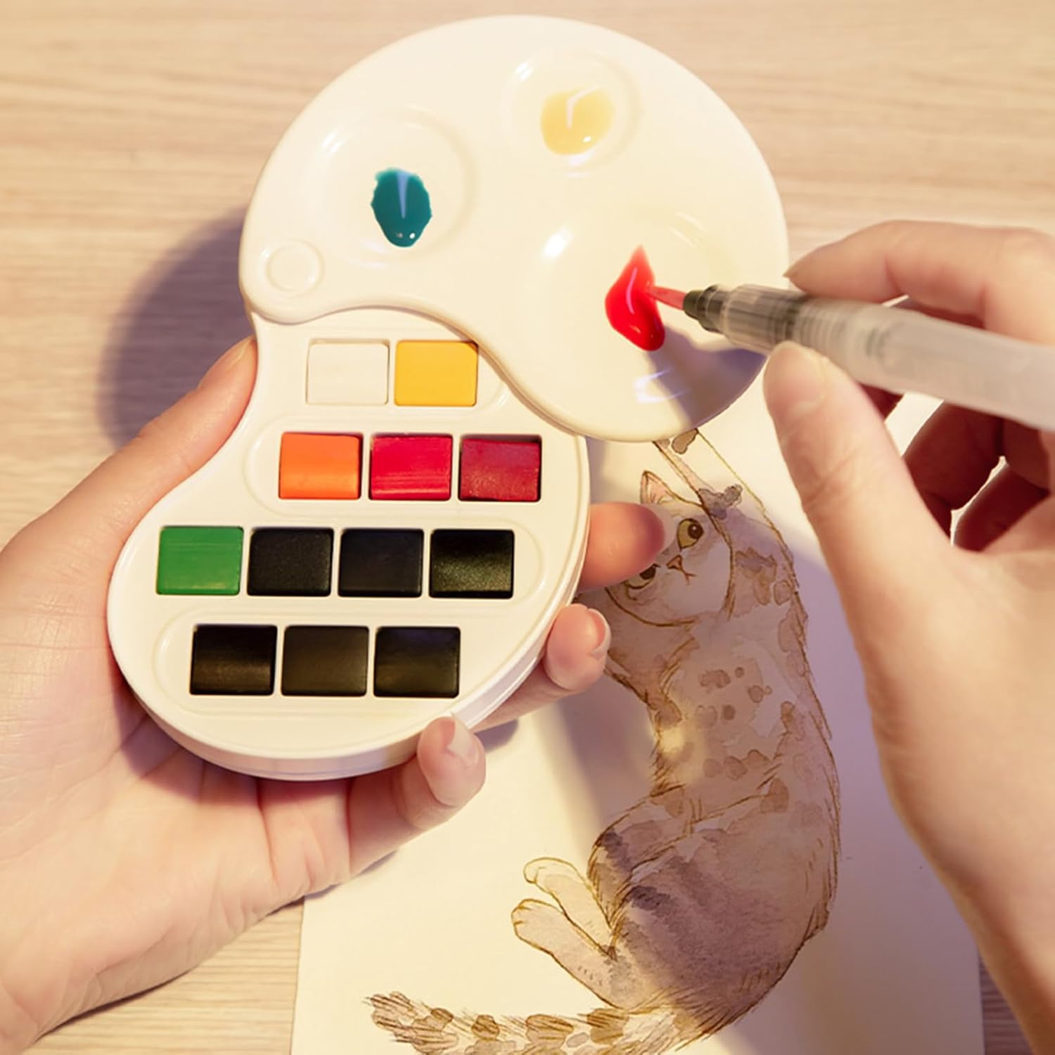 12 o 17 colori vivaci, la vernice ad acquerello ha un alto grado di colorazione, più brillante sotto una forte luce. Funziona alla grande con penne a pennello e spugne per diversi effetti sorprendenti pigmenti solidi acquerello, non tossici e sicuri, molto festivi, compleanni, per studenti, principianti Ogni set viene fornito con tavolozza e tutti i colori solidi sono ben organizzati in una custodia pieghevole. Leggero e compatto, da trasportare e riporre Questa pittura ad acquerello professionale è per tutti i pittori, principianti, artisti, studenti e bambini che dipingono su carta, tessuto, legno, pietra o artigianato I colori solidi sono stati macinati finemente, solubilità rapida in acqua, grande diffusione, colore uniformemente miscelato, elevata resistenza alla luce e alta saturazione. Può essere facilmente miscelato con altri colori per effetti unici