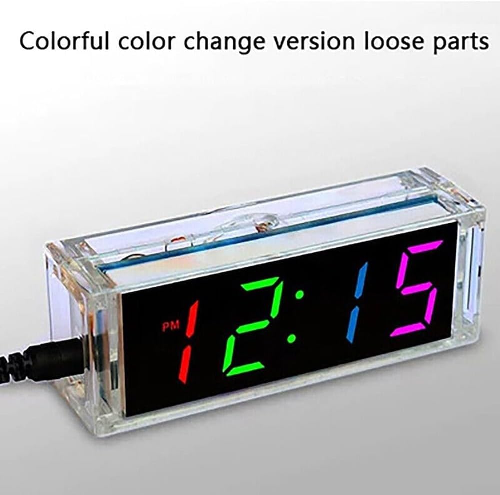 Kit orologio fai da te DigitalTube con sveglia e visualizzazione settimanale della temperatura, 51 MCU DS1302 【Divertimento senza fine】: dotato di 4 moduli LED, questo kit di orologi fai da te offre un divertimento infinito e ti aiuta a imparare più competenze elettroniche. Bello e pratico: questo orologio elettronico fai da te può visualizzare ora, data e temperatura, rendendolo bello e pratico. 【Per l'apprendimento e l'allenamento】: ampiamente utilizzato nelle scuole, questo kit di orologi aiuta gli studenti ad apprendere le competenze meccaniche ed elettroniche di base, comprendere i principi di funzionamento del circuito e addestrare le abilità elettroniche e la saldatura. Luminosità e colore personalizzabili: la luminosità dell'orologio può essere impostata per regolare automaticamente, consentendo di personalizzare il tuo colore preferito o godere di cambiamenti automatici di colore che si adattano meglio alla tua vita quotidiana. 【Misurazione accurata della temperatura e funzione di allarme】: questo orologio elettronico a 4 cifre può misurare con precisione la temperatura. Utilizza un alimentatore da 5 V CC, supporta la memoria di spegnimento e le funzioni di allarme, e viene fornito con 3 tracce musicali regolabili per soddisfare le tue diverse esigenze. Con questo kit fai da te per orologio digitale, puoi creare il tuo bellissimo orologio.