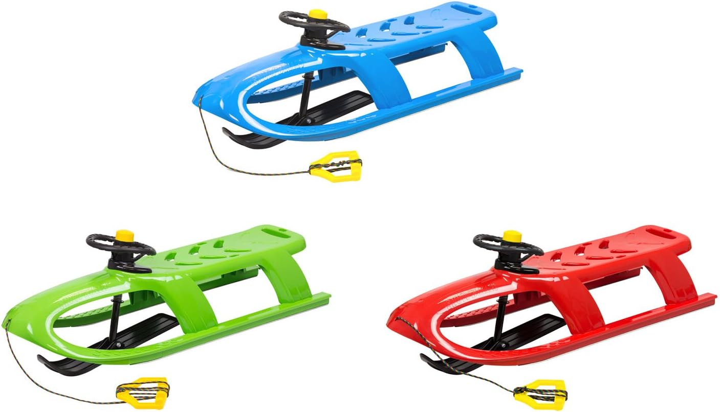 Slitta per bambini orientabile con volante e clacson Con pattino, simile a uno sci Con fune per tirare la slitta Slitta con sedile in plastica di alta qualità, resistente fino a -32 gradi