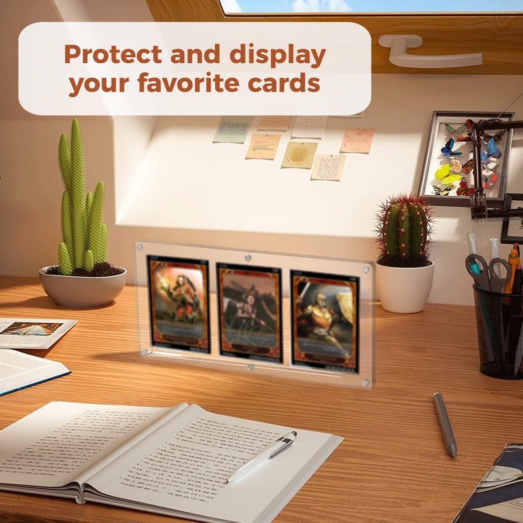 Protezione delle carte pregiata: mostra e conserva le tue carte più preziose, come carte da gioco o sportive; ideale per esporre e conservare carte uniche; la sua struttura trasparente evidenzia ogni dettaglio Sicurezza generale: questa cornice da 23,8 x 11,5 x 1 cm, realizzata in acrilico di qualità, utilizza una forte guarnizione di fissaggio per tenere saldamente e proteggere una collezione di carte Visualizzazione migliorata delle carte: l'elevata chiarezza di questi supporti impedisce lo sbiadimento dovuto all'esposizione alla luce; realizzato in acrilico robusto, questo display è resistente alle deformazioni e realizzato per durare Regalo da collezionista insolito: fornisce una soluzione sicura e decorativa per amici e familiari che amano collezionare carte, migliorare le loro scrivanie o tavoli Design altamente trasparente: questi con forti supporti di fissaggio presentano chiarezza, garantendo che le carte siano sempre in mostra; questi attireranno sicuramente l'attenzione