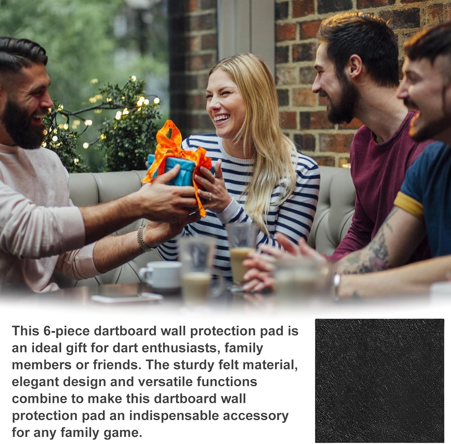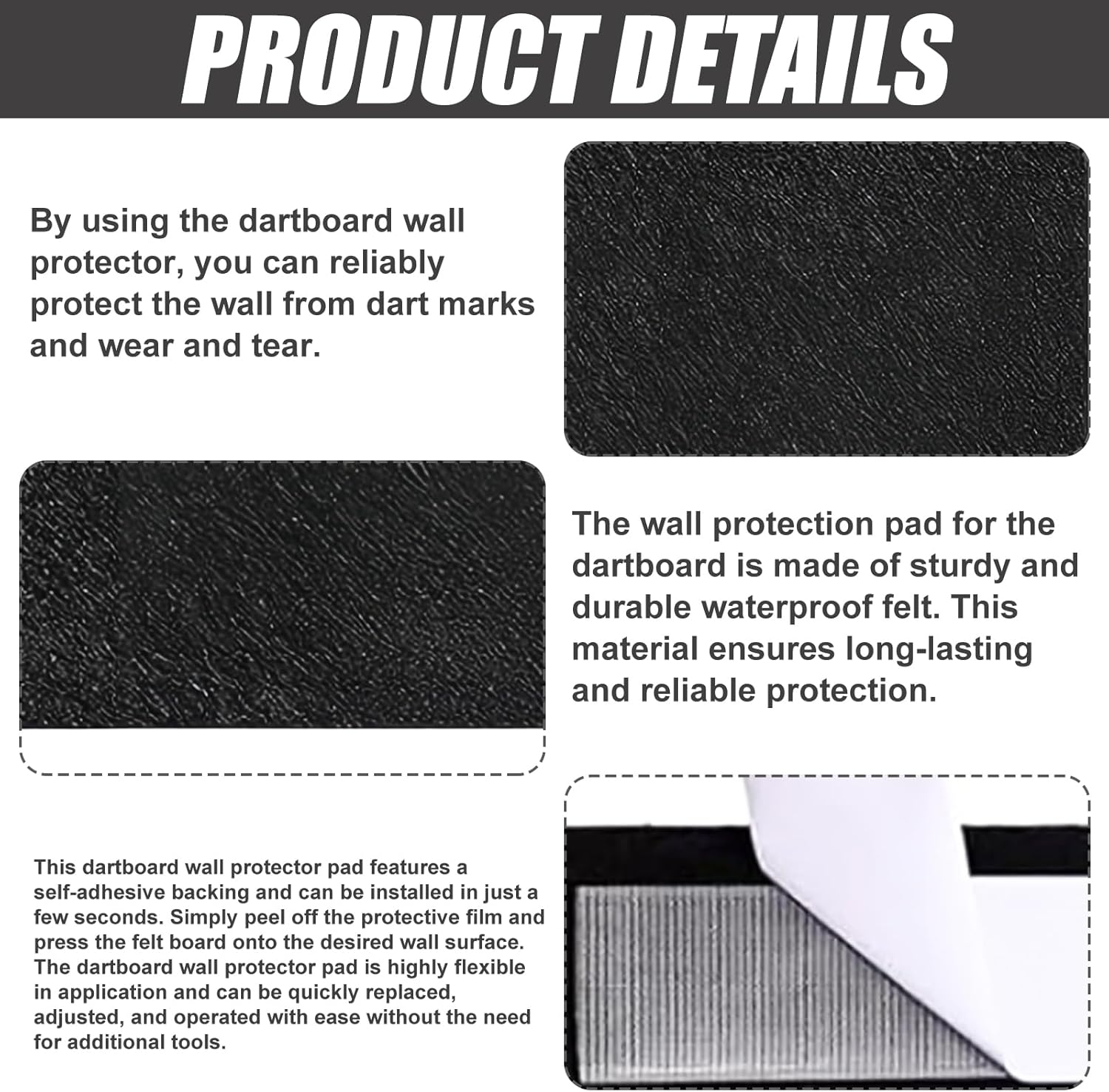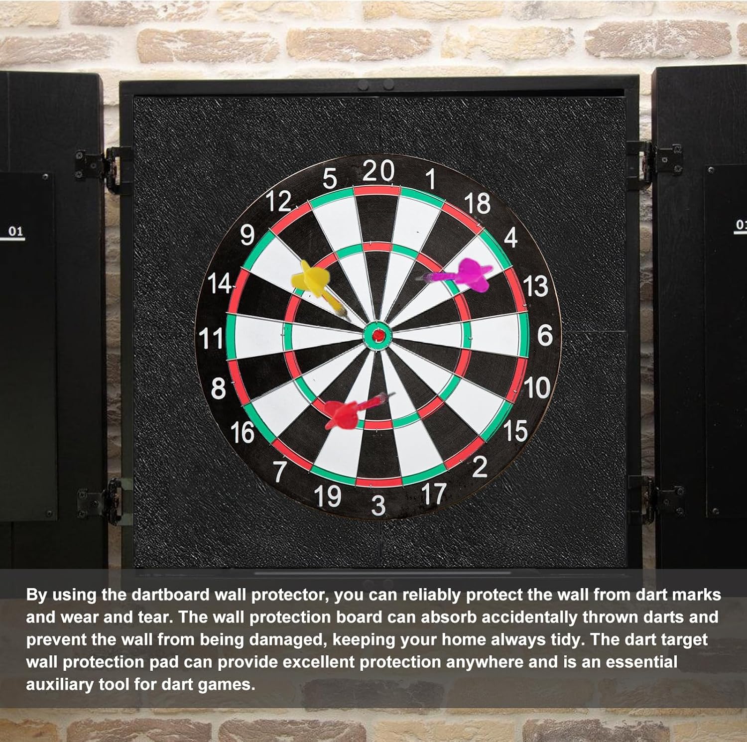 [Materiale in feltro di alta qualità] La protezione da parete per bersaglio è realizzata in feltro resistente e impermeabile. Questo materiale fornisce una protezione duratura e affidabile. Grazie alla lavorazione di alta qualità, la protezione da parete per bersaglio mantiene la sua forma e impedisce che le freccette penetrino nella parete, prolungando così la durata del bersaglio. Protezione efficace della parete: con la protezione da parete per bersaglio proteggerete le vostre pareti in modo affidabile da segni di freccette e usura. La protezione da parete cattura le freccette accidentali, previene danni alla parete e mantiene sempre in ordine la vostra casa. La protezione da parete per bersaglio offre una protezione eccellente ovunque ed è un accessorio indispensabile per le freccette. [Facile da montare, uso flessibile] Questa protezione da parete per bersaglio ha un retro autoadesivo e si monta in pochi secondi. Basta staccare la pellicola protettiva e premere il foglio di feltro sulla superficie della parete desiderata. L'applicazione flessibile della protezione da parete per bersaglio consente una sostituzione rapida, una facile regolazione e una comoda maneggevolezza senza attrezzi aggiuntivi. [Salvaspazio e versatile: questo set di sei protezioni da parete per bersaglio è leggero, portatile e pieghevole per risparmiare spazio. Non è solo adatto per bersagli, ma può anche essere utilizzato come protezione per le pareti per altre attività ricreative e aree di gioco. È la soluzione perfetta per chiunque apprezzi uno spazio abitativo sicuro e ordinato. [Il regalo perfetto per gli appassionati di freccette] Questo set di sei protezioni da parete per bersaglio è un regalo ideale per gli appassionati di freccette, familiari o amici. Il resistente materiale in feltro, il design elegante e la versatilità lo rendono un accessorio indispensabile per qualsiasi gioco in casa.