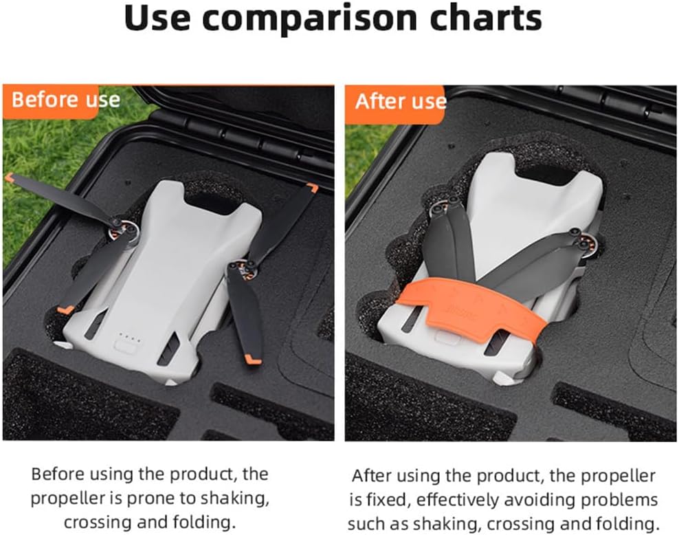 Per DJI Mini supporto elica: progettato specificamente per droni DJI Mini 3/Mini 3 Pro: mantiene le eliche saldamente in posizione durante lo stoccaggio. Aiuta a proteggere le eliche dai danni durante lo stoccaggio o il trasporto. Durevole, confortevole e portatile Materiali di qualità: realizzato in morbido silicone e ABS: offre una forte resistenza e protegge le eliche senza graffiare il tuo DJI Mini 3/Mini 3 Pro. Si adatta perfettamente al corpo del drone e riduce il movimento dell'elica durante il trasporto Design unico con fibbia: facile da installare e rimuovere: il design unico della fibbia consente un'installazione rapida e senza problemi. Comodo quando sei in viaggio o hai bisogno di trasportare il tuo drone DJI Mini 3 o Mini 3 Pro in modo sicuro Facile da riporre e trasportare: dopo aver piegato il drone DJI Mini 3/Mini 3 Pro: il supporto protegge le eliche anteriori e posteriori. Rende più facile imballarli in vari sacchetti di stoccaggio, come borse morbide OEM, custodie fai da te, custodie EVA o custodie rigide impermeabili La confezione include: 1 supporto per elica DJI Mini 3/Mini 3 Pro. Nota: la confezione non contiene un drone, una borsa o altri accessori