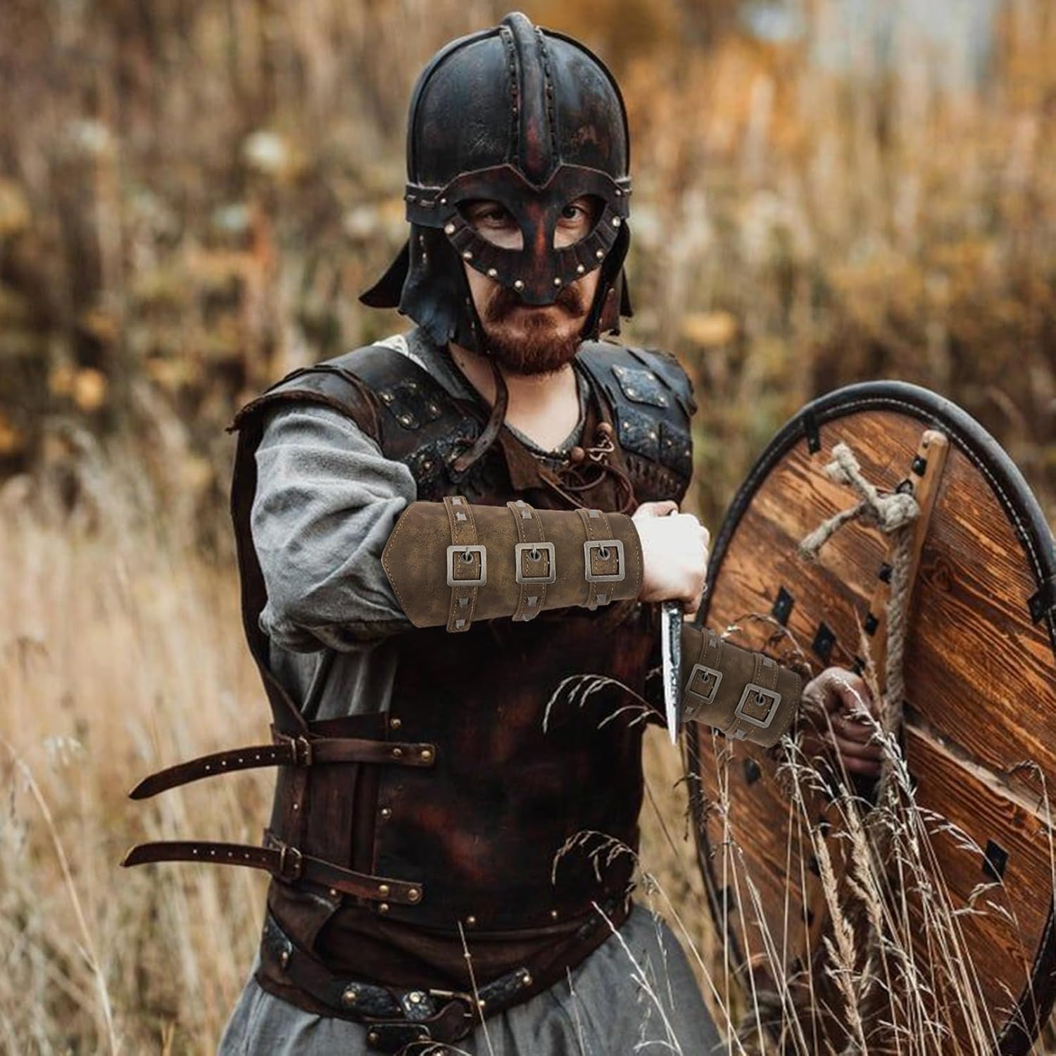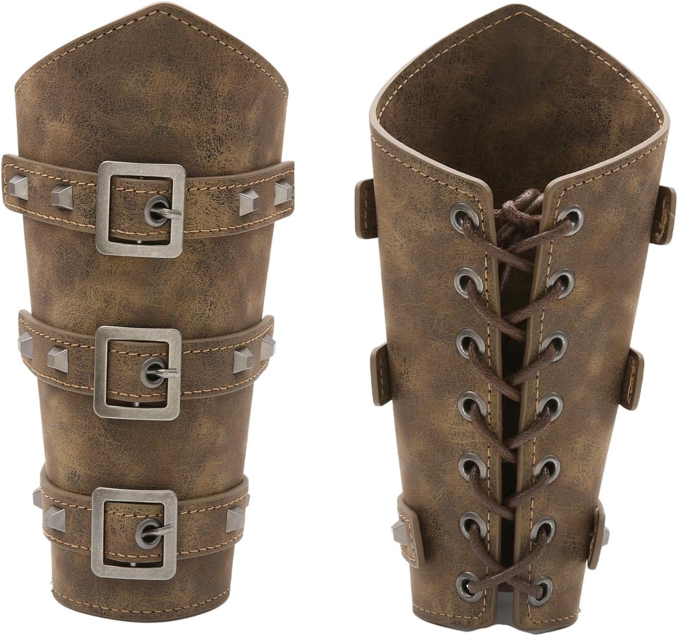 Ren faire Bracers - Questa protezione per il braccio medievale da uomo ha tre cinturini in finta pelle con graziosi abbellimenti in metallo che gli conferiscono un fantastico look di design. Protezioni per le braccia medievali: queste protezioni per le braccia vichinghe sono realizzate in finta pelle di alta qualità e sono realizzate a mano per garantire un artigianato sofisticato e una sensazione realistica. Cinturino in finta pelle vichinga: questa protezione per avambraccio in finta pelle rinascimentale è lunga 25 cm (9,8 pollici) e larga 21,5 cm (8,4 pollici), con fori metallici su entrambi i lati della protezione per il polso cosplay vintage per consentire diverse dimensioni del braccio. Regolabile per comfort ed estetica. Scaldabraccia Cosplay - Dotato di un paio di protezioni per le braccia medievali che possono essere utilizzate per una varietà di occasioni come cosplay, Halloween, LARP, festival rinascimentali, spettacoli teatrali, cosplay e altro ancora. Si abbina perfettamente alle decorazioni di costumi come costumi medievali, costumi gotici, costumi da pirata, costumi vittoriani. Servizio clienti: se non sei soddisfatto o hai domande sulla nostra armatura da cavaliere, faccelo sapere immediatamente e saremo felici di aiutarti.