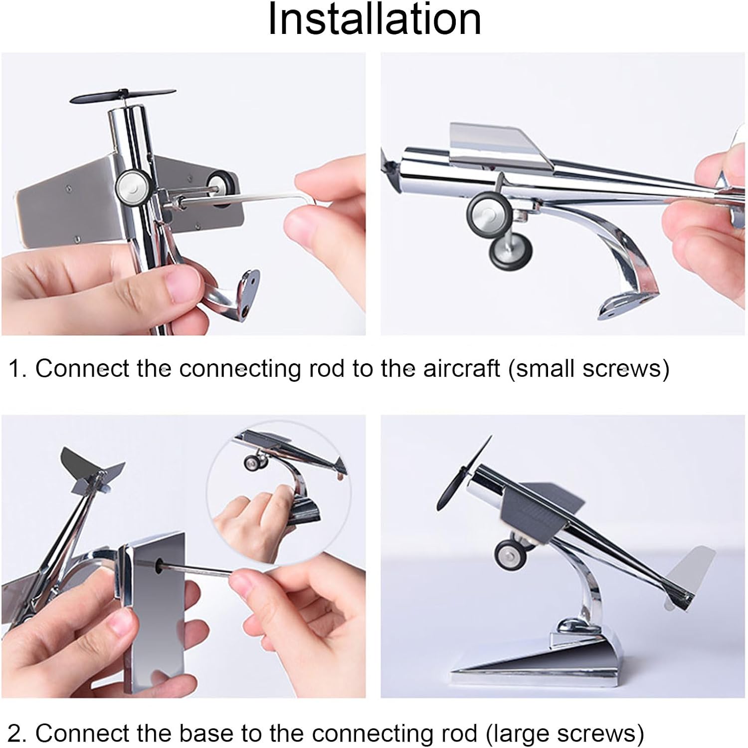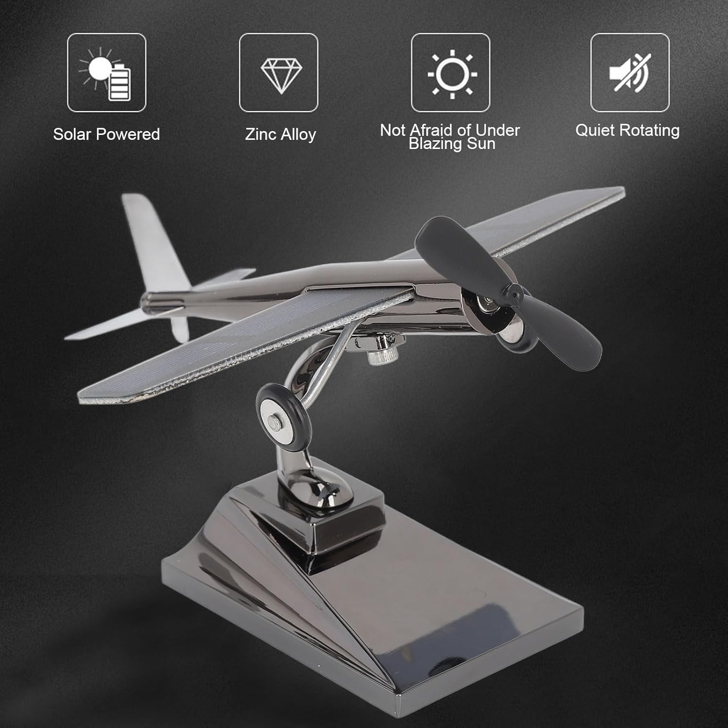 [Facile assemblaggio] L'aereo rotante a energia solare include viti e un cacciavite per un semplice assemblaggio, risparmiando tempo e fatica. [Bellissimo effetto di movimento] Questo aereo solare è dotato di un' ad energia solare che crea un bellissimo effetto rotante alimentato dall'energia solare. [Funzionamento fluido e silenzioso] Realizzato con precisione, questo modello di aereo solare garantisce che l' ruoti in modo fluido e silenzioso, ideale per il sonno dei bambini. [Materiale Premium] Realizzato in lega di zinco e plastica ad alta resistenza, questo modello di aereo ad energia solare è durevole e duraturo. [Design della base stabile] L'aereo ad energia solare è dotato di una base stabile, ideale per il posizionamento attorno al cruscotto dell'auto senza ostacolare la visuale del conducente.