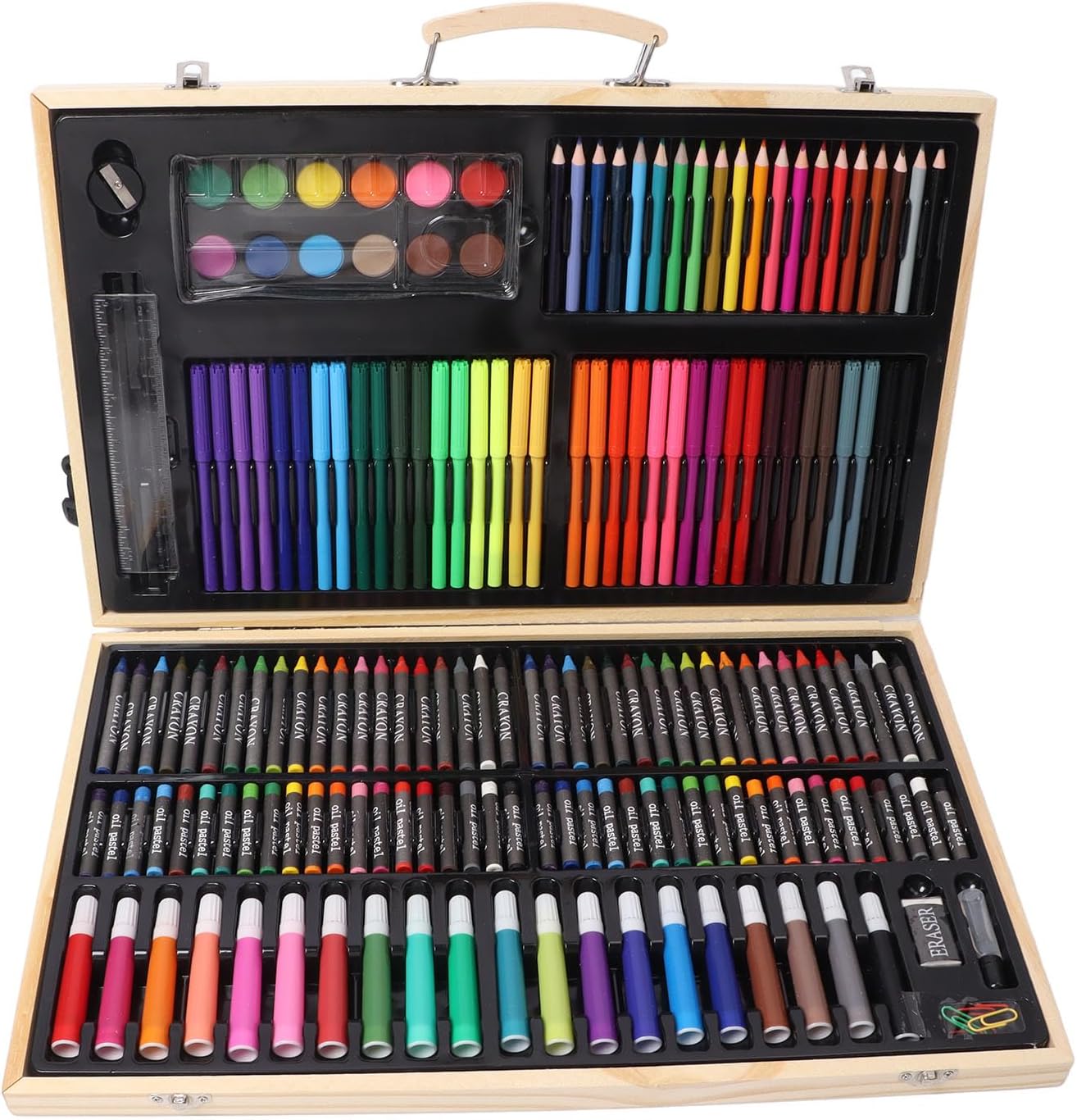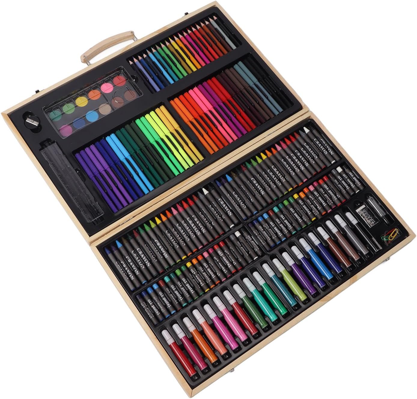 [Possibilità illimitate] Alimenta la creatività di tuo figlio con una vasta gamma di materiali d'arte per infinite esplorazioni artistiche. [Apprendimento pratico] Con strumenti come sovrano, acido e colla, questo kit aiuta i bambini a sviluppare abilità artistiche essenziali mentre si divertono. [Versatile e divertente] Adatto a progetti da colorare, di pittura, disegno e fai -da -te, permettendo al tuo bambino di esprimersi in vari modi. [Storage organizzato] Mantieni tutto in ordine nella scatola di legno, per l'uso a casa, a scuola o durante il viaggio. [Presente ] Un grande per bambini, principianti e adulti, questo kit di disegno ispiderà e nutrirà talenti artistici.