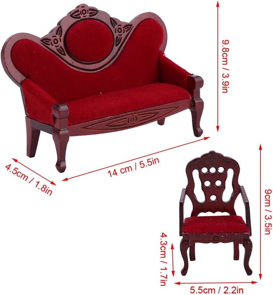 [Decorazioni realistiche per la casa delle bambole] La squisita fattura conferisce qualità realistica alla tua casa delle bambole, migliorandone l'attrattiva visiva. [Vestibilità perfetta per la scala 1:12] Progettato specificamente per le Box/Cover delle bambole 1:12, questo set comprende un divano e due sedie, ideali per il gioco creativo. [Elementi di design classico] Il vivace divano in flanella rossa cattura un fascino nostalgico, aggiungendo eleganza alla tua casa in miniatura. [Incoraggia la creatività] Personalizza la tua casa delle bambole con questo set di mobili unico, per progetti fai-da-te e giochi fantasiosi. [Divertimento per collezionisti e regali] Un fantastico per bambini o collezionisti, questo set di mobili classici arricchisce qualsiasi esperienza nella casa delle bambole.