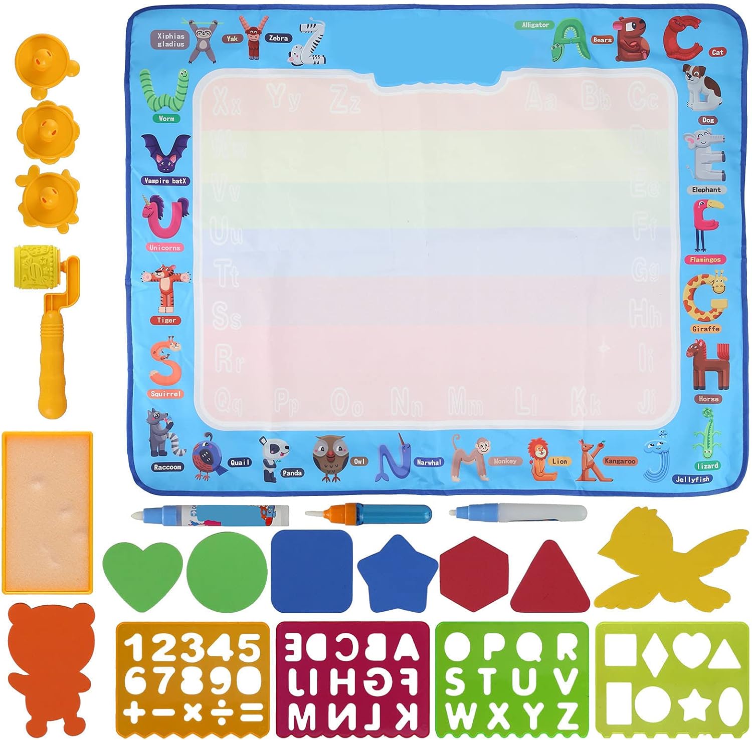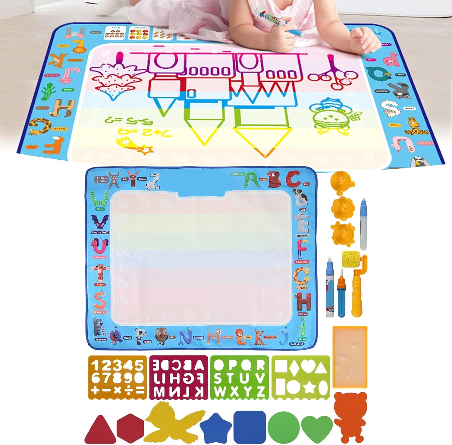 [Apprendimento creativo] Incoraggia il gioco fantasioso per i bambini, consentendo loro di disegnare liberamente con gli amici per ore di divertimento. [Design di alta qualità] Realizzato in tessuto non tessuto, sicuro e morbido per l'uso da parte dei bambini, è pieghevole per riporlo e viaggiare facilmente. [Gioco interattivo] Ottimo per il legame genitore-figlio, aiuta a migliorare la coordinazione occhio-mano e le capacità cognitive attraverso l'apprendimento giocoso. [Divertimento riutilizzabile] Nessun disordine a casa poiché il tappetino per disegnare ad acqua può essere utilizzato ripetutamente, offrendo creatività senza stress ai genitori. [Cartoon Patterns] Presenta una grafica vivace in stile cartone animato che coinvolge i giovani artisti e stimola la loro creatività.