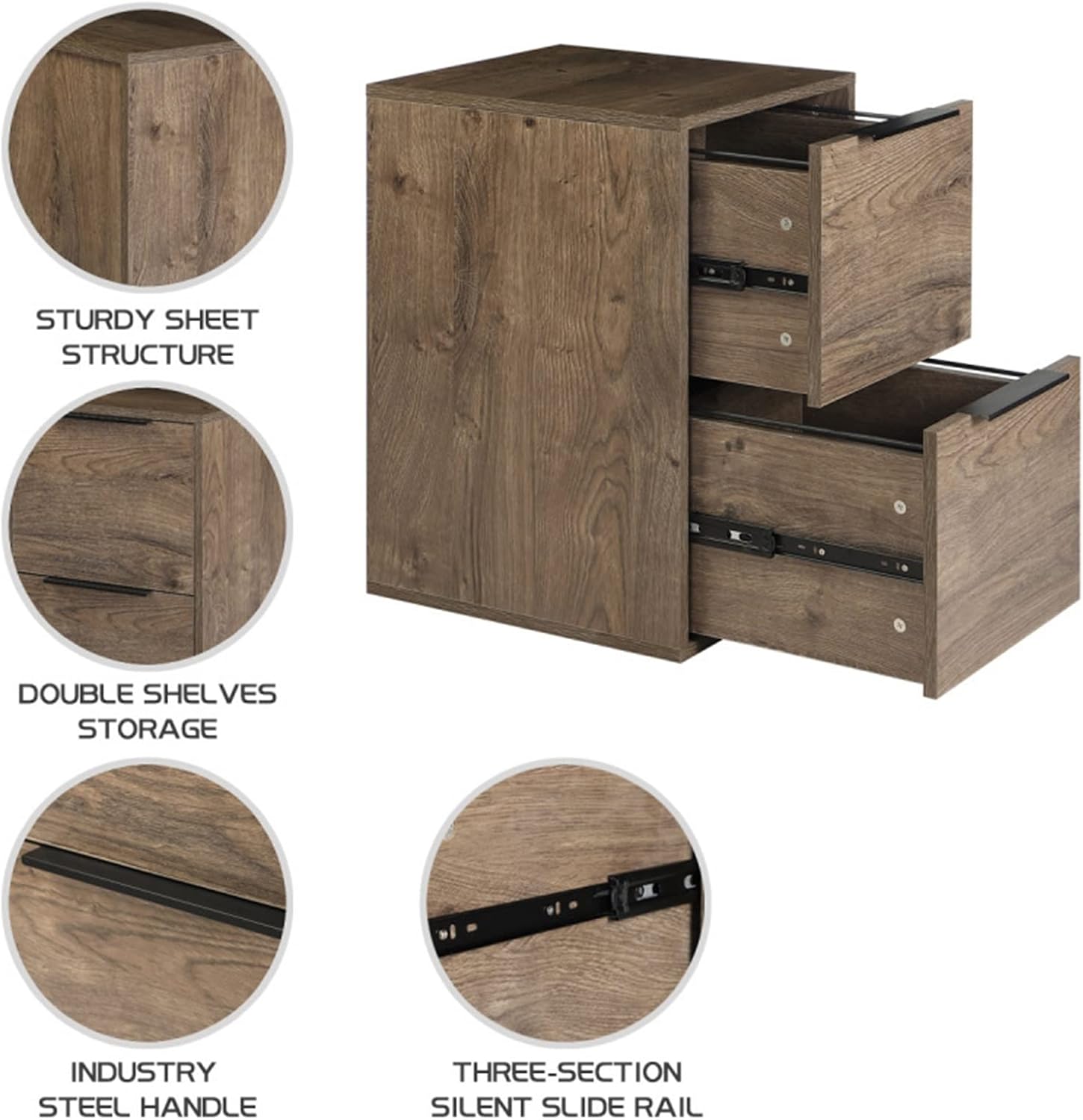 Gli armadietti per documenti dall'aspetto moderno e raffinato possono abbinarsi perfettamente agli altri mobili per aggiungere magia e fascino alla moda al tuo ufficio. Le maniglie decorative ti consentono di accedere facilmente al cassetto che contiene uno schedario formato lettera. Questo schedario è dotato di 2 cassetti profondi, perfetti per appendere i vostri documenti di archiviazione. I 2 ampi cassetti consentono di riporre documenti in formato lettera e possono contenere fino a 50 libbre. Gli ampi cassetti offrono spazio per cartelle sospese in formato lettera e per tutte le esigenze di archiviazione dell'ufficio. La sospensione Smooth Slide consente un'apertura silenziosa del cassetto. Questo schedario è facile da installare e tutti gli strumenti e le istruzioni necessari sono inclusi. Inoltre, puoi posizionare stampanti e proiettori sulla superficie come desideri.