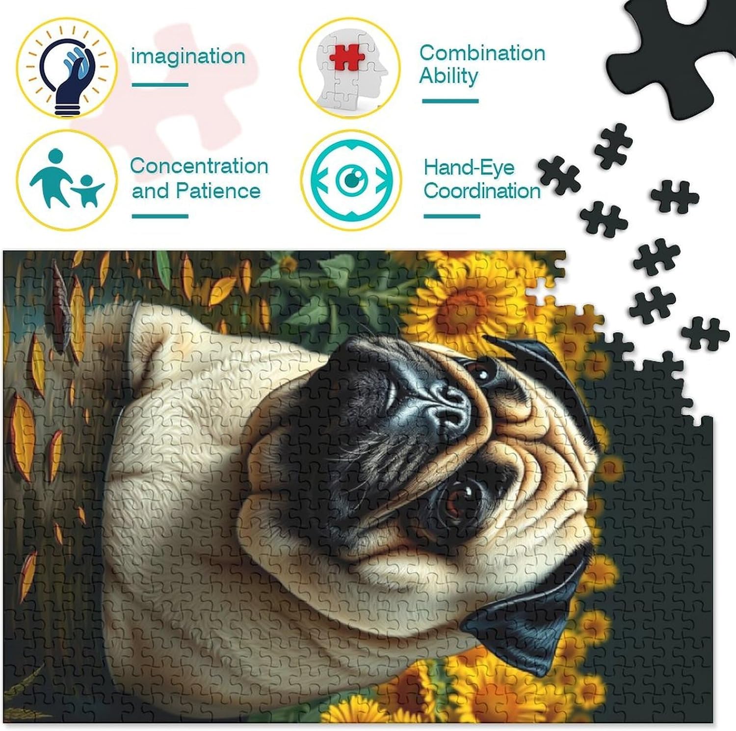 🌸GIOCHI PER ADULTI: una sfida emozionante da regalare a tutti li appassionati di puzzle e amanti dell'arte, ideale per uomo, donna o ragazzi; i puzzle aiutano a esercitare la memoria, migliorano la concentrazione e stimolano l'intuizione 🌸QUALITÀ PREMIUM: il massimo del divertimento con prodotti di altissima qualità in termini di materiali, motivi e design; realizzati in legno tagliati con fustelle fatte a mano, per un risultato impeccabile 🌸Buon regalo: il pet dog puzzle finito misura 38x26cm/1000pcs una volta completato. I migliori regali per ragazzi e ragazze dai 14 anni in su per compleanni o festività (Natale, Halloween, Ringraziamento, ecc.) 🌸Concediti una piacevole pausa relax! La nostra linea di puzzle da Pug 1000 pezzi è il regalo perfetto per chi ama ritagliarsi un momento di svago e di relax mettendo alla prova le proprie abilità logiche e di concentrazione 🌸I nostri Puzzle ti offrono un'ampia scelta d'immagini capace di soddisfare i gusti di tutti: grazie alla qualità dei materiali riciclati, la robustezza e resistenza dei singoli pezzi insieme alla brillantezza dei colori, ti garantiamo un risultato impeccabile e privo di riflessi