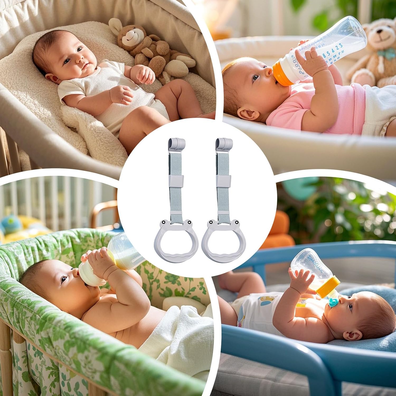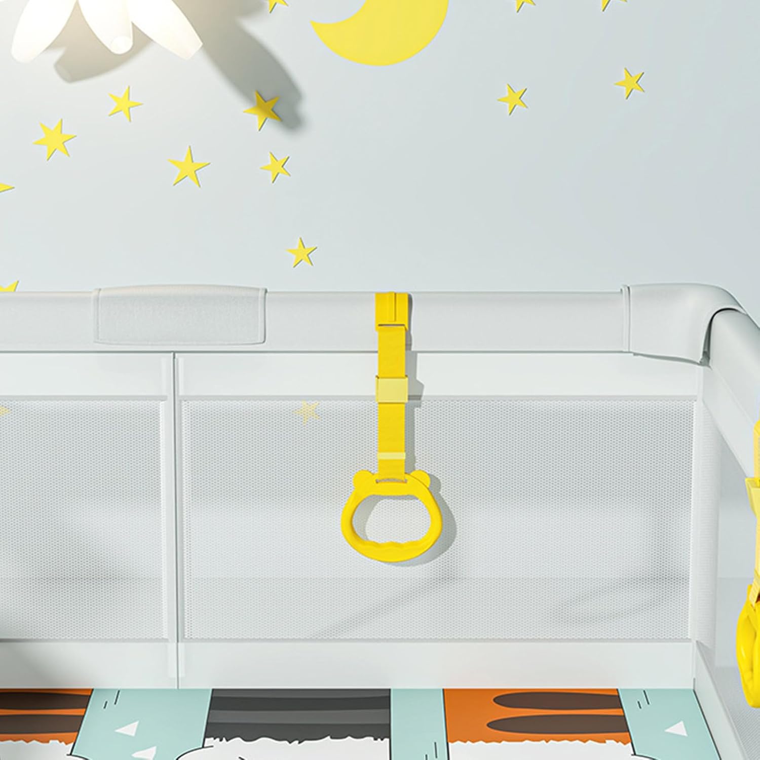 Cammina con sicurezza: promuovere l'allenamento di camminata in sicurezza utilizzando questo come un attacco a manico sicuro; Ottimo per migliorare la sicurezza durante le avventure del tuo bambino Aumenta la fiducia: fornendo una presa sicura per stare in piedi, l'anello pull consente ai bambini di stare da soli, aiutandoli a superare la paura di cadere. Raddoppia come strumento di gioco e fitness versatile, promuovendo le capacità motorie e lo sviluppo della del braccio Materiale morbido, gioco delicato: realizzato con cinghie di nylon morbide e tessute e anelli PP di alta qualità, questo adorabile set di pull-up è resistente, assicurando che non deformi o si usarà facilmente, offrendo un'esperienza di gioco sicura e confortevole ideale per il divertimento a lungo termine Facile da allegare: montare facilmente questi anelli su bordi del presepe, della culla o del passeggino per una lunghezza regolabile che si evolve con il bambino, consente anche di sospendere alcuni giocattoli sull'anello (non incluso) Comodità ideale: impugnatura a traino pieghevole per bambini che si adatta facilmente alla tasca o alla borsa senza occupare spazio, ideale per l'uso all'aperto a casa o all'aperto
