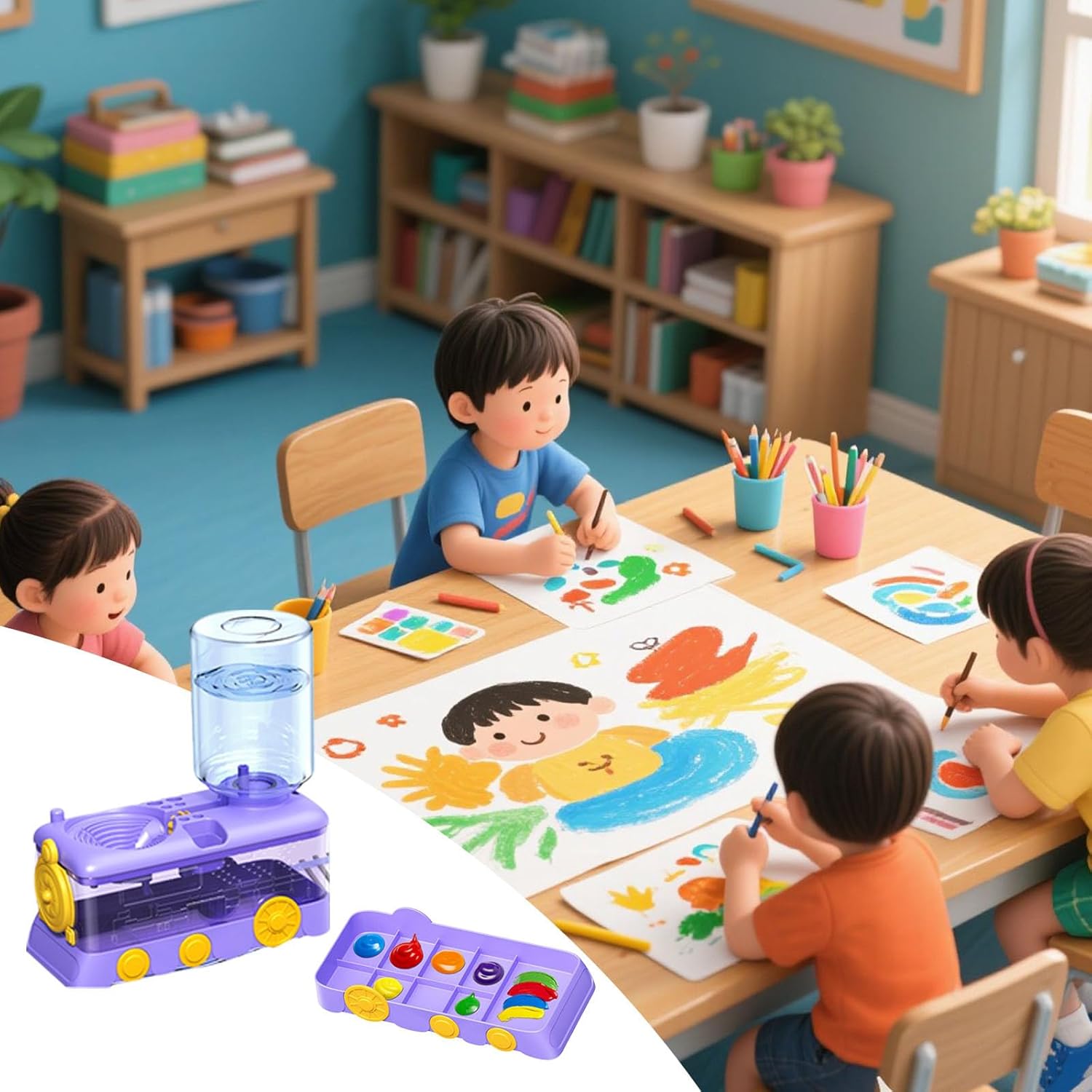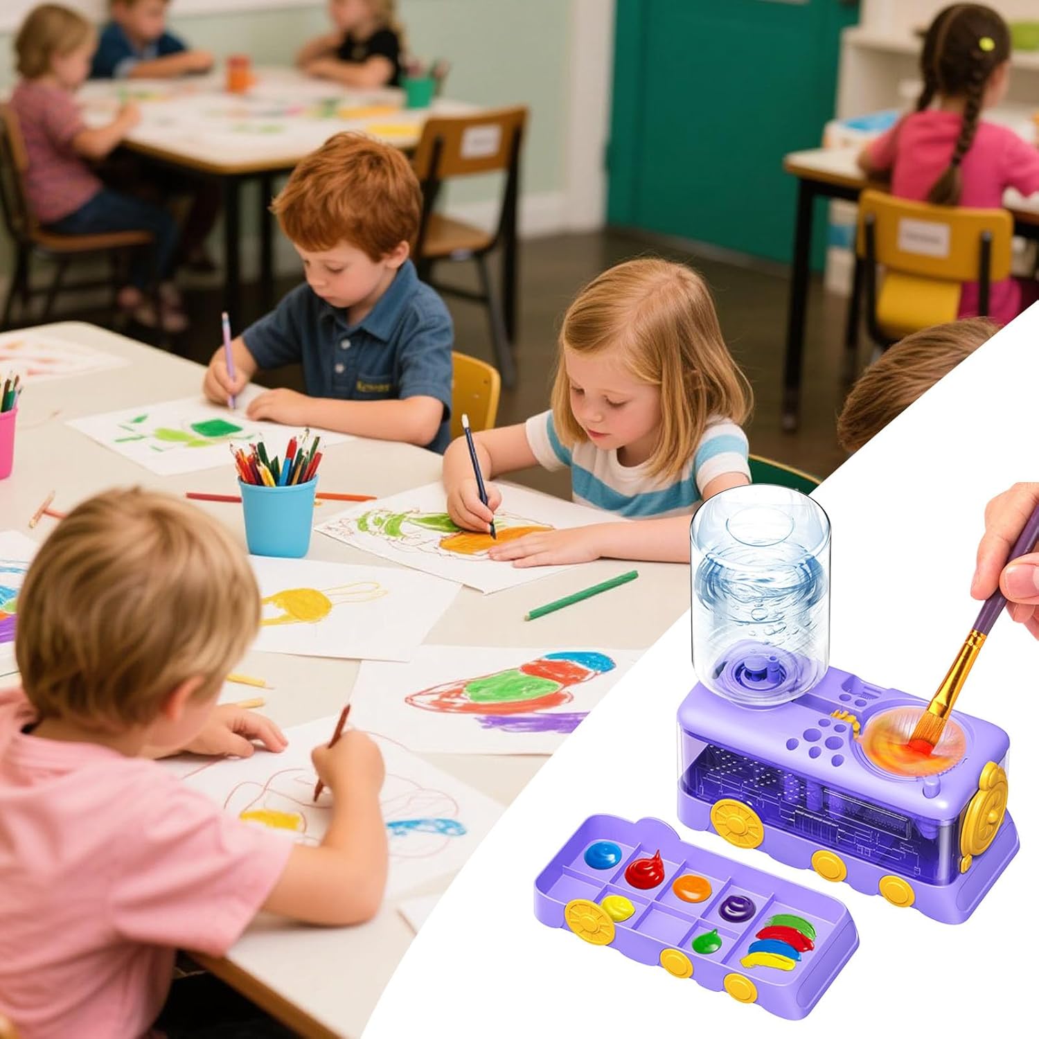 Materiale: il nostro detergente per pennelli è realizzato in plastica ABS di alta qualità, superiore alla comune plastica PP utilizzata da altri. È più resistente, stabile e meno soggetto a rotture, fornendo a lungo termine e per i tuoi pennelli. Inoltre, il nostro strumento di pulizia dei pennelli non ha odore particolare, che è per i bambini. Scelta perfetta: questo detergente per pennelli è realizzato in plastica di alta qualità, è molto resistente, leggero e facile da trasportare. Dispone di un fondo. È una scelta perfetta per qualsiasi pittore. È perfetto per la pulizia di acquerelli e dipinti acrilici. Se hai un pittore o un amico o un parente che disegna, regalalo come un e lo apprezzeranno sicuramente. Ultimo pennello per la pulizia dei pennelli: un dispositivo automatico per la pulizia della matita ad acquerello a forma di treno. Il telaio del treno serve come A, e il corpo del treno è un set di dispositivi automatici per la pulizia della matita ad acquerello. Ottieni a tuo figlio di più sul disegno. Pulizia efficiente e veloce: un sistema di circolazione dell'acqua sporca e eroga acqua fresca con un pulsante. Pulisce i pennelli fino a 2 volte più velocemente.