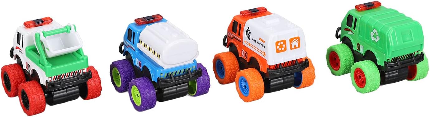 [Tira indietro il camion della spazzatura]: i prodotti si affidano all'inerzia per il movimento, non sono necessarie batterie. Tira indietro facilmente e osservalo andare avanti da solo. [Capacità di esercizio]: coltivare la consapevolezza ambientale dei bambini attraverso l'ordinamento della spazzatura. Migliora l'abilità e l'immaginazione pratica. [Sicuro e affidabile]: realizzato in plastica e lega di alta qualità, e non tossica. Angoli lisci per sicurezza. [Regali ideali per ragazzi]: di compleanno e vacanze. Ogni ragazzo ama i modelli di camion come questo. [Set completo]: il set di veicoli per il riciclaggio dei rifiuti comprende quattro modelli di camion unici. Ognuno con la propria funzione nella vita reale.