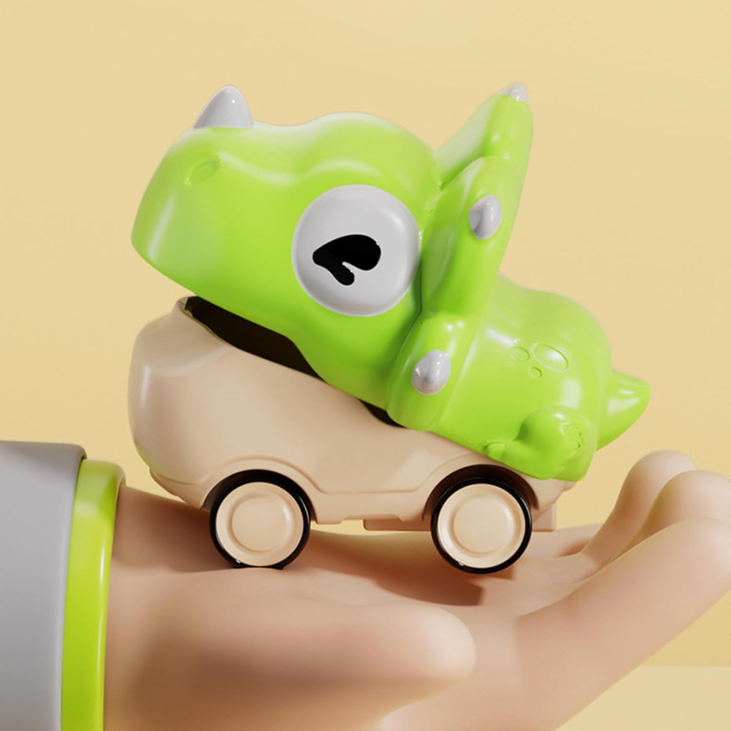 Fun Pull-Back Action for Endless Play: Features exciting pull-back and release movement that encourages active play and motor skill development for babies while providing hours of engaging, non-battery entertainment indoors or outdoors Cute Dinosaur-Themed Design: Each car showcases vibrant, cartoon-style dinosaur characters with smooth edges and detailed expressions that spark children's imagination and help foster interest in prehistoric creatures during playtime Built Tough for Active babies: Designed with fall-resistant, high-quality to withstand daily drops, bumps, and rough handling by young children, making it a perfect toy for active babies just learning to explore and interact Child-Safe and non toxic Build: Made from no bpa, non toxic materials with smooth rounded edges to ensure complete safety for babies and babies over 1 year old, supporting worry-free fun for parents and caregivers alike Perfect for Gifting and Development: Comes as a colorful 4-piece set ideal for birthdays, holidays, or classroom play, and helps improve hand-eye coordination, cause-and-effect understanding, and social sharing skills during group play