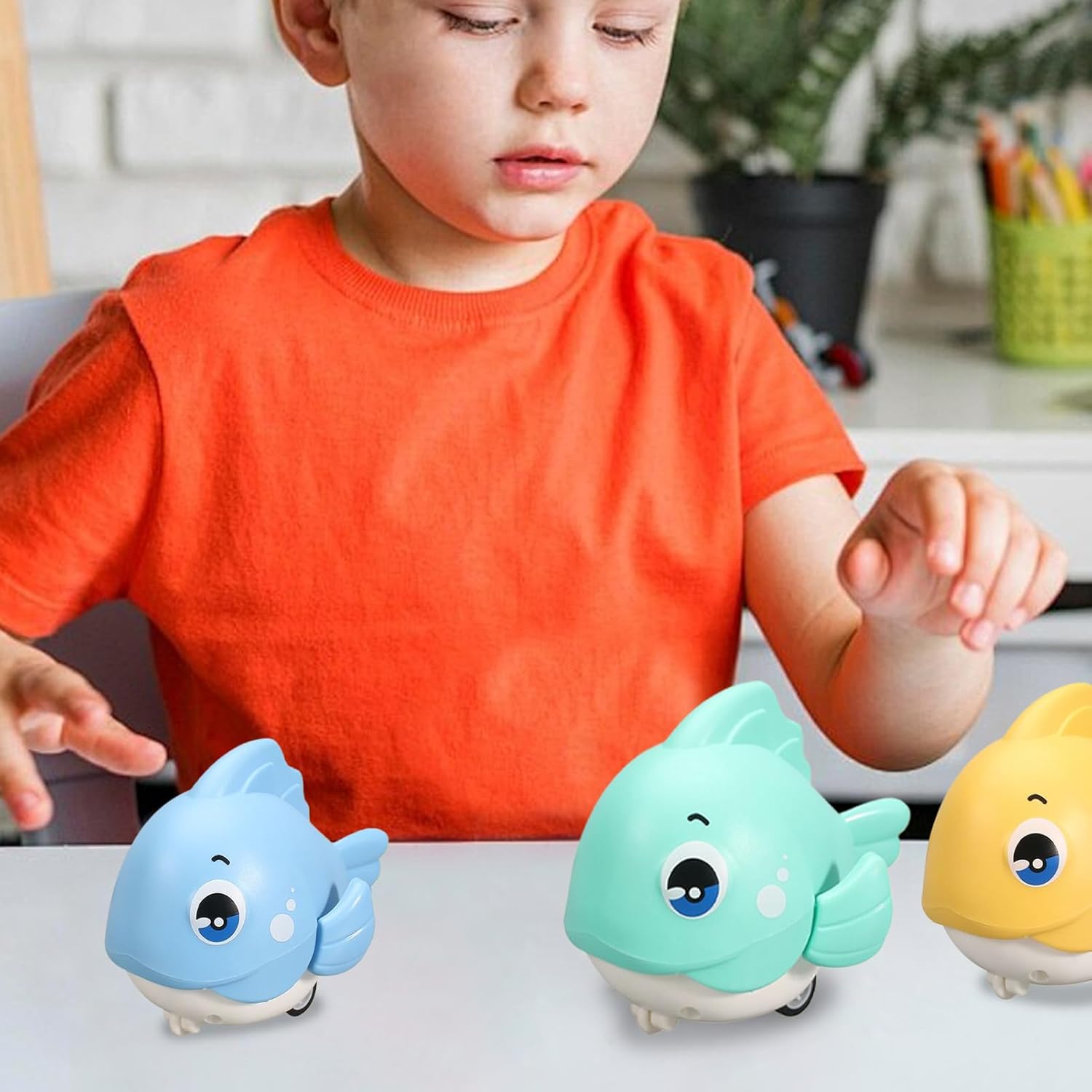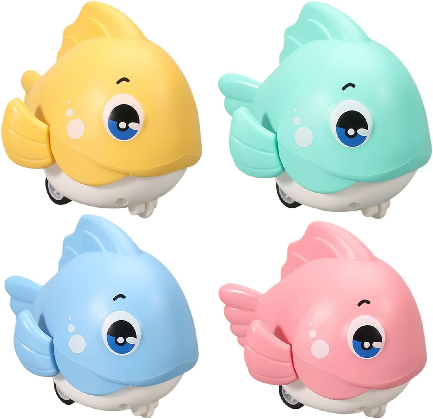 Push and Go Action: Each fish toy is powered by a simple pull-back mechanism that helps encourage to crawl and after them promoting movement, muscle coordination, and active engagement during play Cute Cartoon Design: Features four colorful sea creatures with expressive faces and smooth rounded edges to attract your child’s attention while providing a safe, visually stimulating experience for early learners Interactive Playset Fun: Encourages parent-child interaction and social bonding as kids race, count, and identify the animals in this engaging sea-themed set perfect for solo or group play at home or on the go Supports Early Development: Designed to enhance fine motor skills, spatial awareness, and hand-eye coordination while introducing basic concepts of cause-and-effect through fun and simple motion-based play Perfect Gift for : A great gift idea for birthdays, holidays, or early education settings this fish toy set comes in a kid-friendly size and durable build ideal for and learning to walk and explore