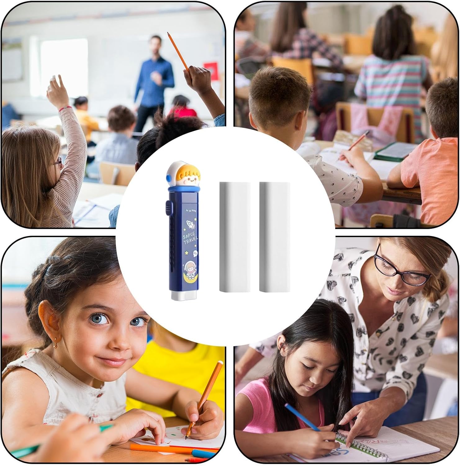 Pulito e ordinato: elimina macchie e segni senza sforzo con la nostra gomma a matita retrattile scorrevole. carta pulita e ordinata ogni volta, questa gomma offre ottime prestazioni di cancellazione senza lasciare tracce o sbavature. Design divertente: goditi una divertente esperienza di cancellazione e con la nostra matita retrattile scorrevole. L'adorabile design dei cartoni animati ti innamorerà e porterà un buon umore al tuo compito. Facile da usare: far scorrere la gomma per una correzione precisa e far scorrere per proteggerla dai danni. La nostra gomma a matita retrattile scorrevole garantisce una conservazione senza disordine e un utilizzo senza sforzo grazie alla sua funzione facile da scivolare, rendendo la cancellazione un gioco da ragazzi. Gomma adatta per viaggiare: trasportare e riporre la gomma retrattile con facilità grazie alle dimensioni adeguate e al design retrattile. Mettilo nel tuo astuccio di cancelleria e portalo con te ovunque tu vada, garantendo correzioni pulite e facili all'aperto. Usi versatili: con il suo design bello ed elegante, la gomma a matita retrattile scorrevole è uno strumento indispensabile adatto a vari scenari, tra cui apprendimento, pittura, disegno, schizzo e altro ancora.
