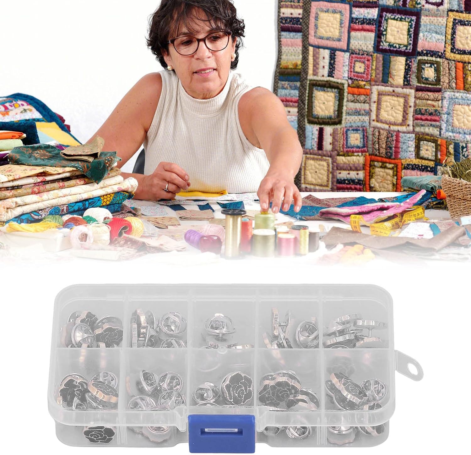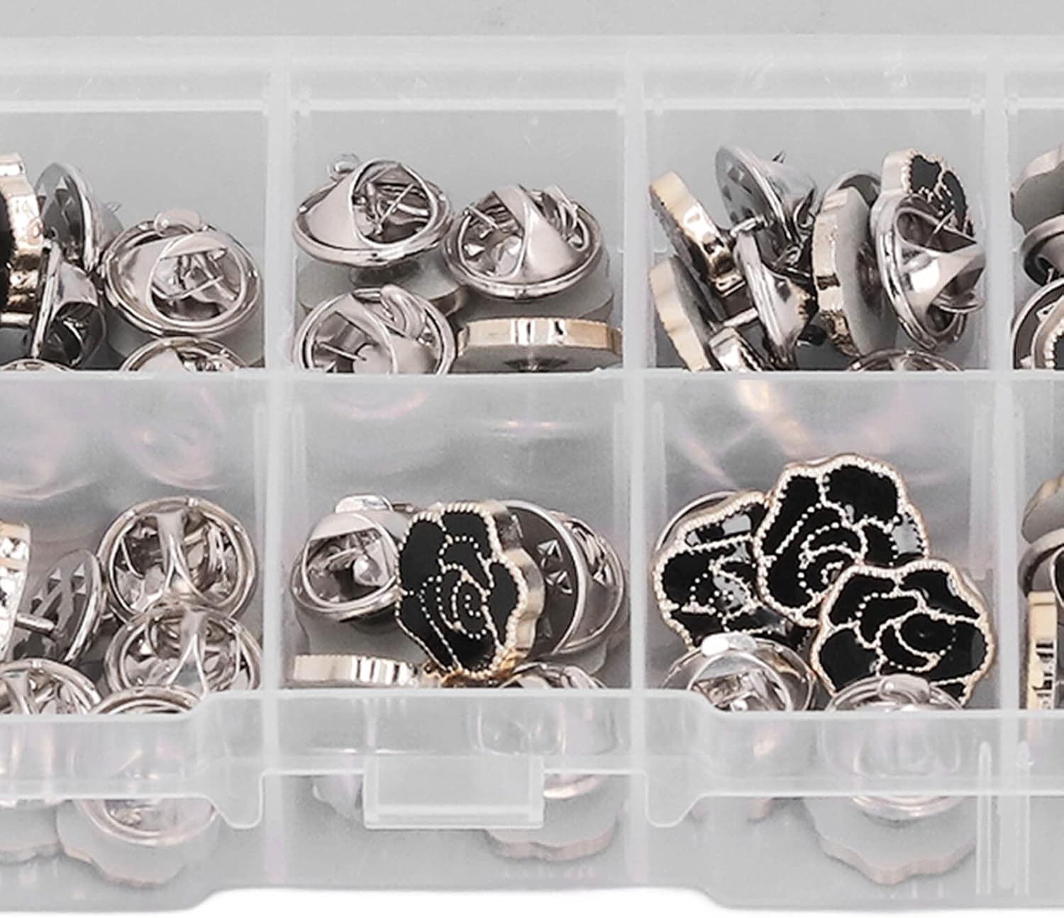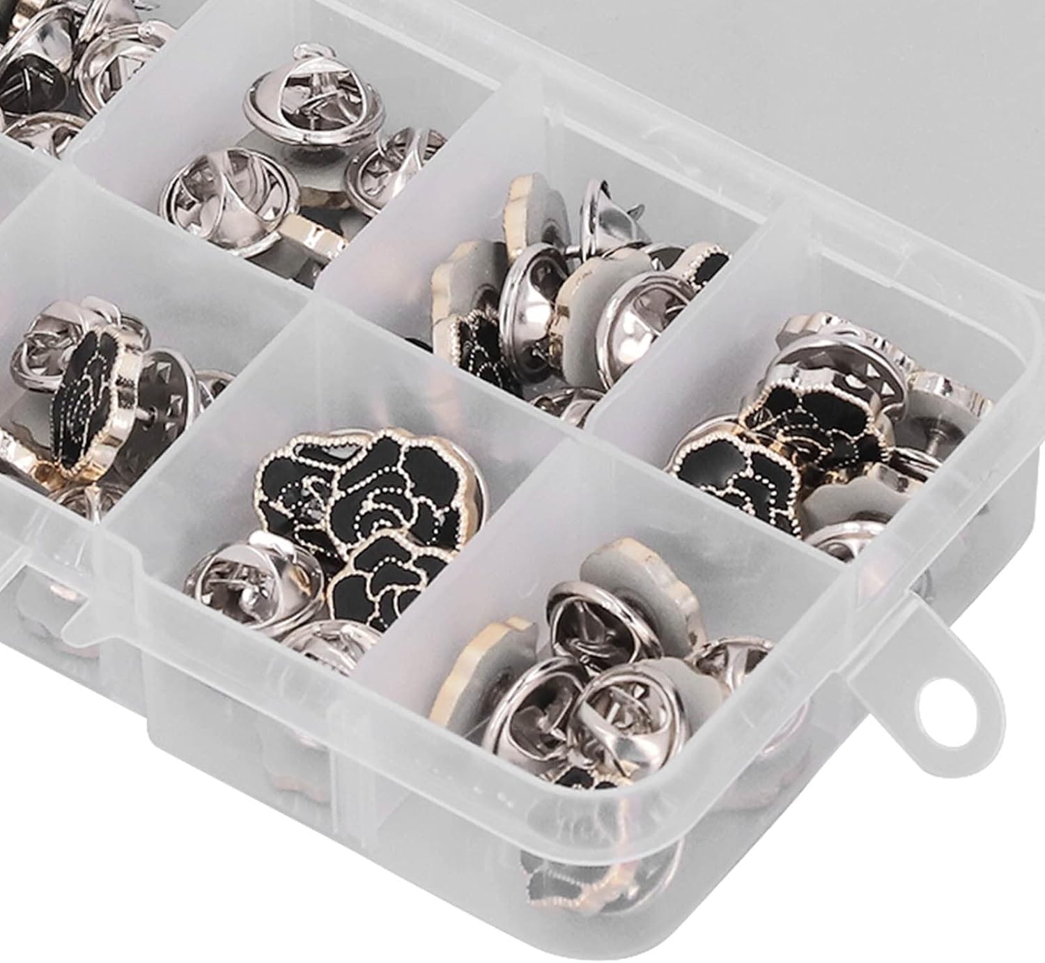 Applicazione Sewless: l'installazione press-on non richiede strumenti di cucito; Non c'è bisogno di aghi, fili, martelli o pugni; Per riparazioni rapide di abbigliamento e aggiornamenti decorativi su vari indumenti Costruzione : combinazione di materiali di plastica e ferro con componenti potenziati in rame; Mantiene l'integrità strutturale attraverso ripetuti cicli di uso e lavaggio; Design intelligente, comodo e pratico Design in avanti: la forma rosa nera offre abbigliamento e accessori decorativi; Combina il fissaggio funzionale con il miglioramento estetico; Sia per abbigliamento casual che per abbigliamento formale Utilità di riparazione completa: metodo per riparare camicie rotte, cardigan, maglioni e abiti; Funziona perfettamente con vari tipi di tessuto tra cui maglieria e materiali Versatilità artigianale: supporta più applicazioni tra cui l'elaborazione in pelle e il design degli accessori; Include tre scatole di archiviazione compartimentate per l'organizzazione; Previene la perdita o il danno ai pulsanti durante la conservazione
