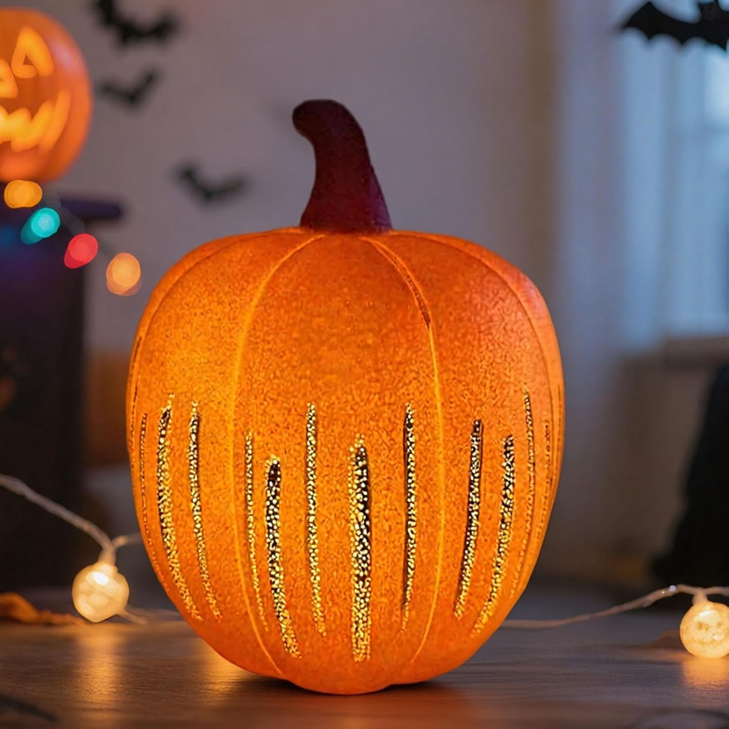 Creazione di atmosfera scintillante: l'effetto scintillante crea un ambiente caldo e romantico, rendendo questa luce di zucca una decorazione ideale per il centrotavola per qualsiasi ambiente da tavolo. Costruzione in resina: realizzato in resina premium, questa zucca a luce scintillante vanta una struttura robusta che impedisce la deformazione e il danno per l'uso affidabile. Efficienza a batteria: gestita da batterie (spedite senza batterie) con un controllo dell'interruttore, questa luce di zucca è efficiente dal punto di vista energetico e facile da gestire. Design compatto e portatile: piccolo e portatile, la zucca di illuminazione può essere utilizzata all'interno o all'esterno e funge da scelta deliziosa per i regali per le vacanze. Forma di zucca per gioia festosa: progettata a forma di zucca, la luce notturna porta la gioia del raccolto autunnale, rendendolo eccellente per celebrare il Ringraziamento.
