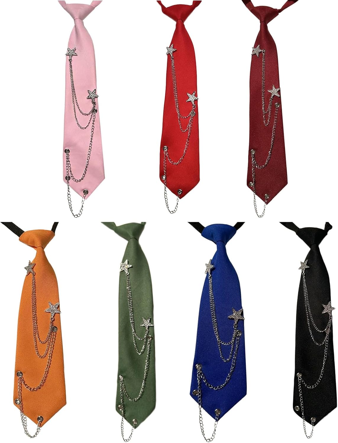 Punk Star Catena Cravatta Per Le Donne Studente Giapponese Pre Legato Legami Regolabili Per Uniforme Scuola Camicia Festa Laurea Caratteristiche: Migliora i tuoi stili con la nostra cravatta a catena a stella, un accessorio alla moda progettato per fare una dichiarazione e mostrare il tuo gusto sofisticato Realizzato in tessuto di poliestere, questa cravatta squisita offre durata e comfort, presenta una lunghezza regolabile per una vestibilità perfetta in ogni situazione. Ideale per trendsetter, professionisti aziendali e frequentatori di feste, questa cravatta unisex a catena si rivolge a chiunque cerchi di aggiungere un tocco di eleganza al proprio guardaroba. Che si tratti di gite casual, feste cosplay, banchetti, carnevale, questa cravatta è un ottimo complemento per mostrare il tuo stile unico e il tuo fascino. Fai colpo con questo accessorio alla moda che unisce perfettamente fascino classico con design contemporaneo, facendoti risaltare in qualsiasi folla. Specifiche tecniche: Componente: poliestere. Colore opzionale: 1,2,3,4,5,6,7 Lunghezza della cravatta: circa 32 cm. Quantità: 1 pezzo. La confezione include: 1 cravatta da collo. Nota: Considerare un margine di errore di 1-3 mm a causa della misurazione manuale. Si prega di assicurarsi che non sia un problema prima di effettuare l'ordine. A causa della differenza tra i diversi monitor, l'immagine potrebbe non riflettere il colore reale dell'articolo.