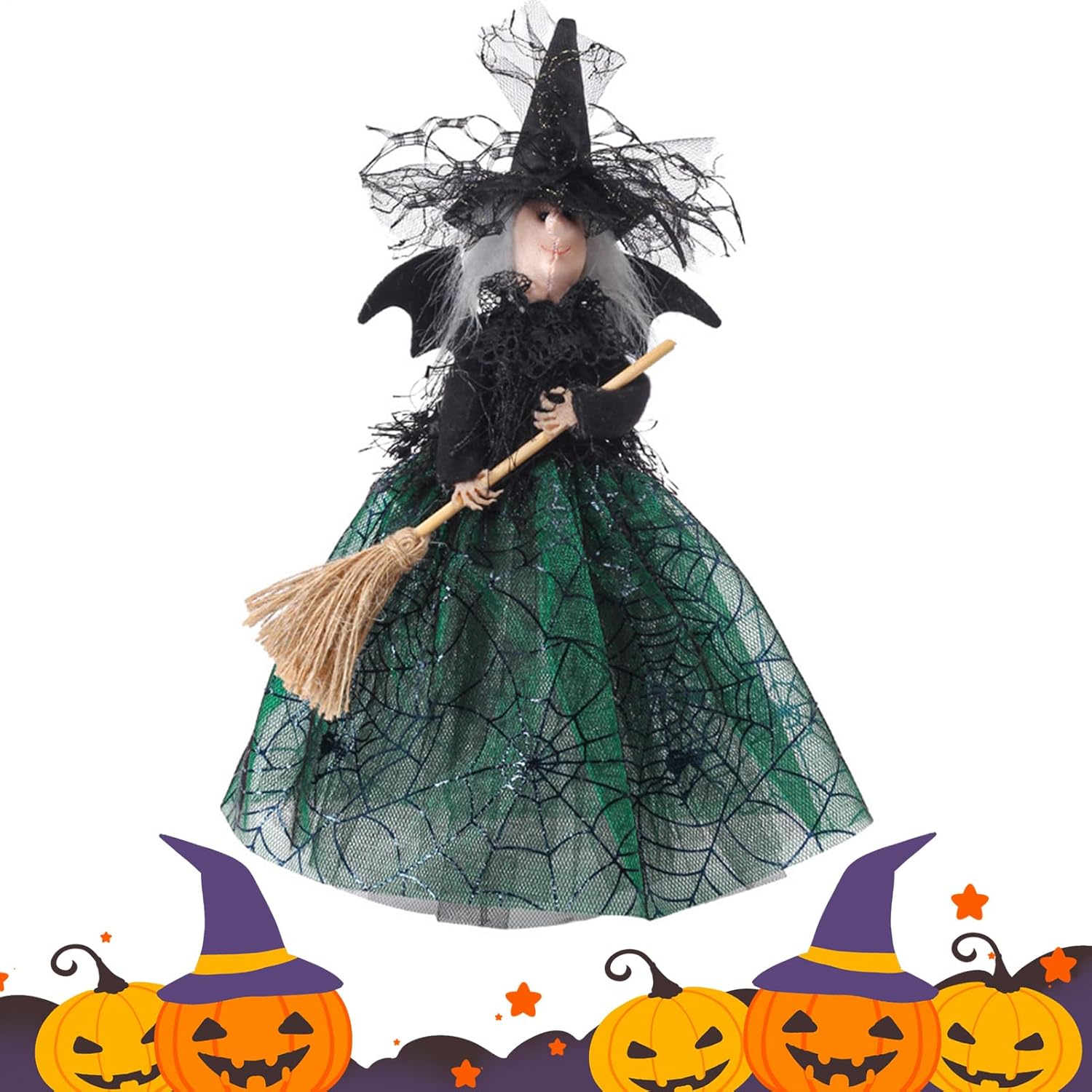 Fascino affascinante: decora il tuo albero con il nostro cappello a cilindro per albero di streghe con decorazione di Halloween con una silhouette elegante e misteriosa ricoperta di ragnatele nere e accuratamente decorata con un cappello nero e una scopa volante, aggiungendo un fascino affascinante alla tua decorazione. Festività inquietante: trasforma il tuo albero di Natale in uno spettacolo spettrale con la nostra decorazione di Halloween “Witch Tree Top”! Il suo design inquietante e dettagliato esalta lo spirito natalizio con un tocco magico. MIGLIORA LA DECORAZIONE DI HALLOWEEN: questo cappello a cilindro per albero delle streghe, un'aggiunta perfetta alla collezione di Halloween, esalta la tua decorazione con il suo fascino inquietante e crea un'atmosfera stranamente festosa. Maggiore stabilità: la base robusta del nostro topper per albero delle streghe con decorazione di Halloween assicura che rimanga saldamente su qualsiasi tavolo o albero di Halloween e previene oscillazioni o cadute inutili. Godetevi i festeggiamenti in tutta tranquillità! MULTIUSO - La nostra decorazione per albero della strega di Halloween è un'aggiunta spettrale alla cima dell'albero, al camino, agli alberi, al tavolo, alle feste e all'arredamento della casa, aggiungendo fascino spettrale a qualsiasi ambiente.