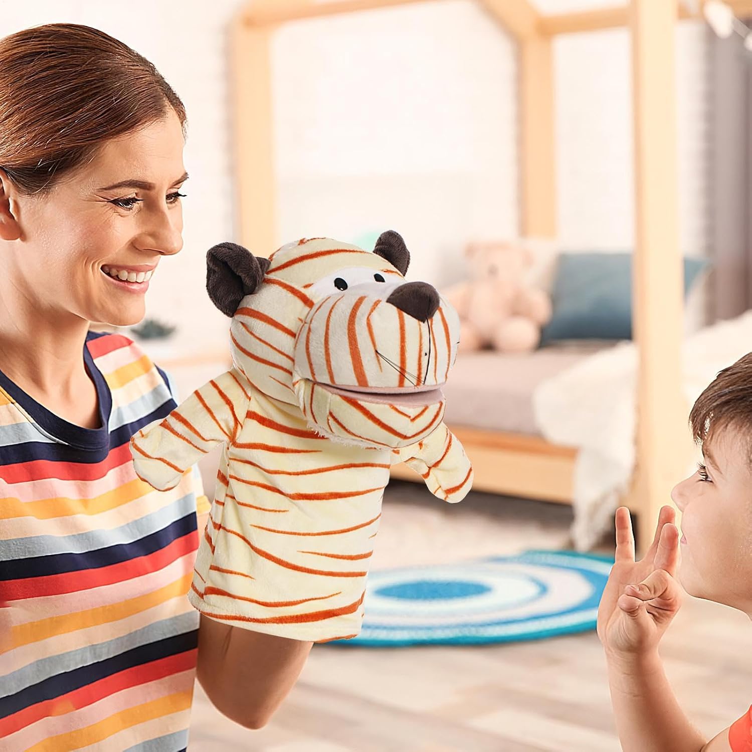 Design realistico: forme speciali di animali da cartone animato, interessanti e attraenti, stimola l'interesse dei bambini e ispira la loro immaginazione con un vivido design dei cartoni animati Una fonte di divertimento: con la sua bocca flessibile e mobile, il nostro burattino a mano è per le attività 'asilo e i giochi di famiglia, trasformando il di gioco in una performance e interessante che porta gioia a tutti i soggetti coinvolti Migliorare la relazione con il bambino: progettati per migliorare i sentimenti, questi burattini a mano aiutano i bambini a migliorare le loro abilità linguistiche e promuovere le relazioni genitore-figlio attraverso interazioni coinvolgenti Ottima artigianato: fabbricato con materiale lussuoso che garantisce un'esperienza di gioco morbida e confortevole, le nostre marionette con i nostri burattini presentano una squisita fattura e sono sicuri da usare, incoraggiando il gioco immaginativo e la compagnia per il tuo bambino Presenti ideali: i burattini a mano incoraggiano il gioco fantasioso per bambini e bambini, spingendo le avventure di narrazione coinvolgente e aumentando lo sviluppo cognitivo