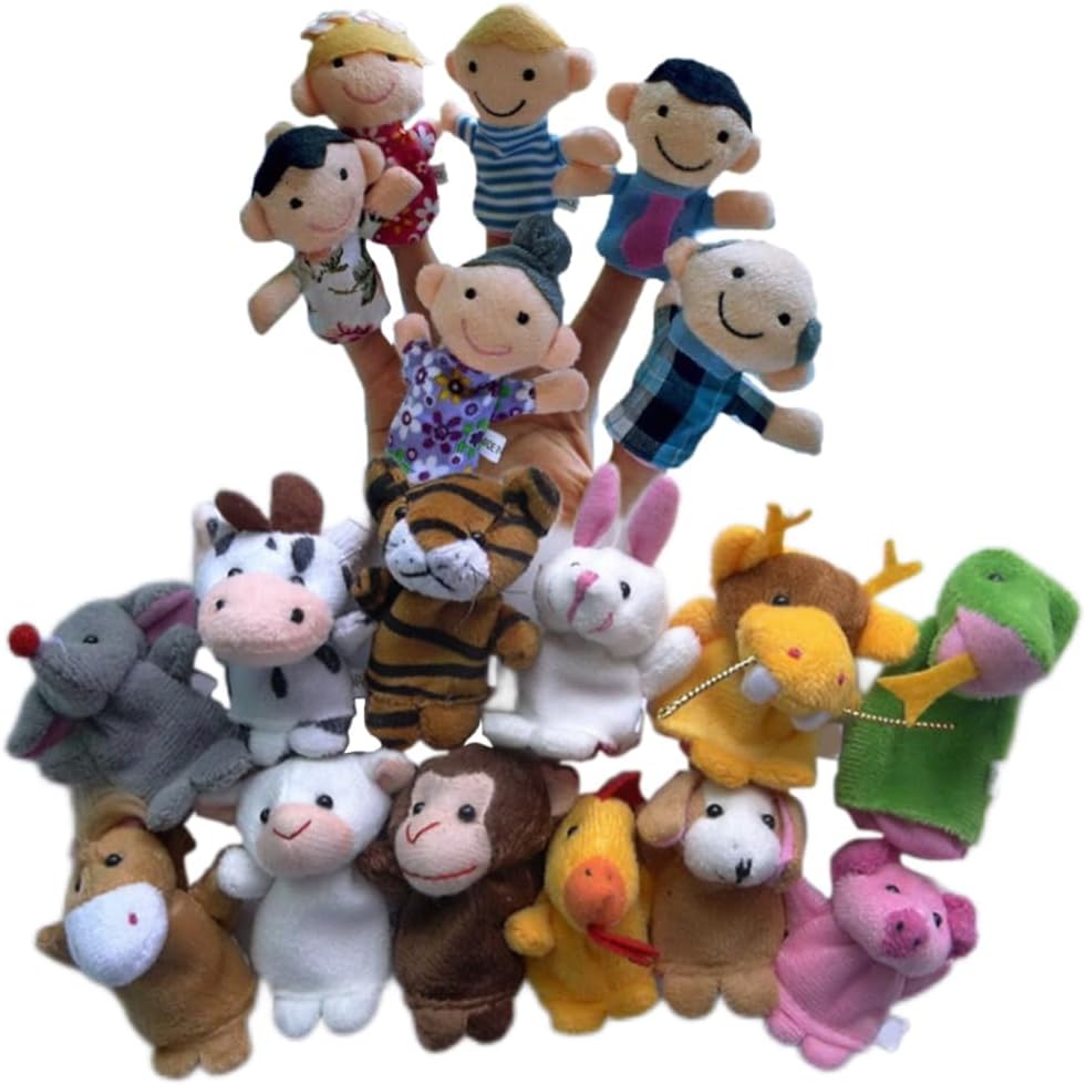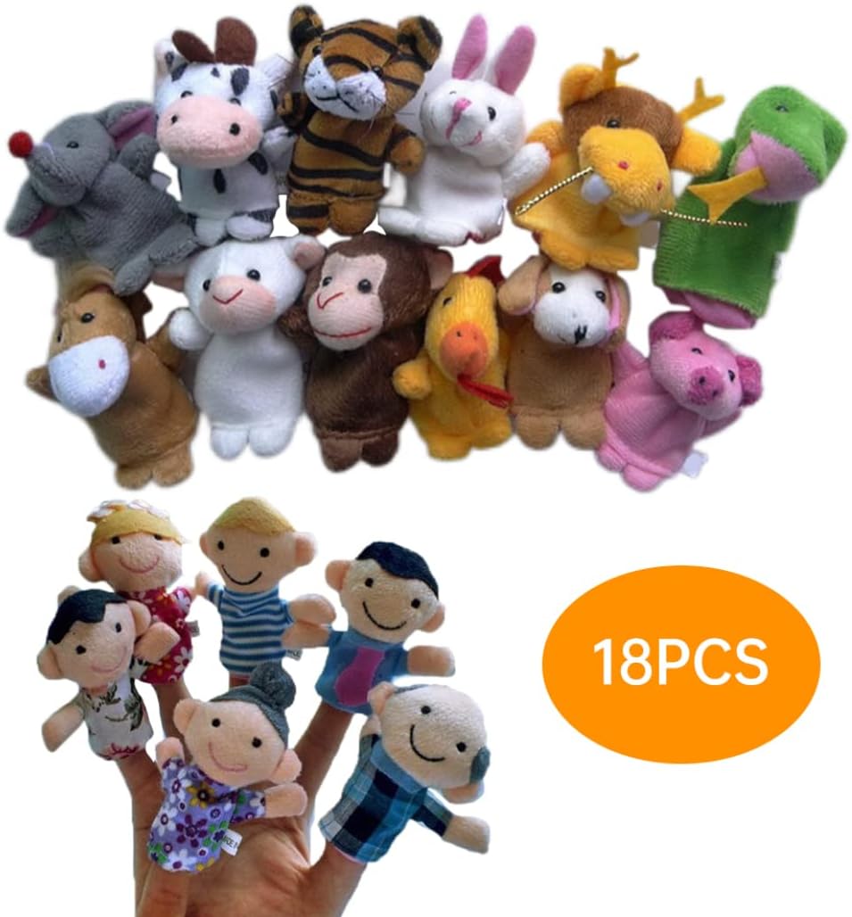 Ottimo per la narrazione: ogni burattino ha un buco che è abito da dito, 18 burattini per 10 dita, ottimo per la narrazione. Dimensione: 6x7,5 cm/2.36x2,95 pollici..Ogni burattino ha un anello elastico sul fondo, si adatta alla maggior parte del dito per adulti e bambini in 18 diverse forma degli animali. Ampie applicazioni: grandi aiutanti della storia per raccontare storie, possono accendere l'immaginazione e il pensiero di bambini, il burattino per le dita degli animali può essere ampiamente utilizzato a scuola, asilo nido, scuola domenicale ecc. Ideale per il teatro di burattini in scuola materna. Puppet di peluche: burattini morbidi sono realizzati in tessuto di velluto, pieni di cotone, senza fibre sciolte, senza cattivo odore, ottimi cuciture..Meravigliosi piccoli giocattoli per bambini piccoli e bambini piccoli. Colore brillante: questi burattini a mano sono colorati e caratteristici, il che può attrarre rapidamente il bambino..Indossali sulle dita e spostalo vividamente per far ridere il tuo bambino.