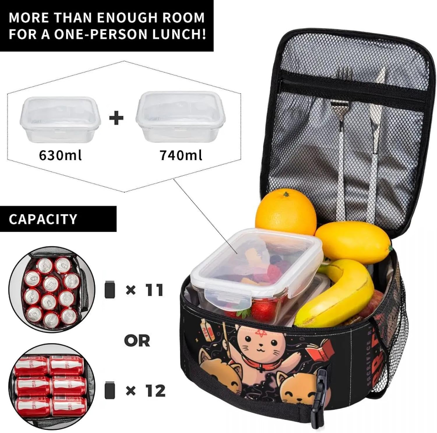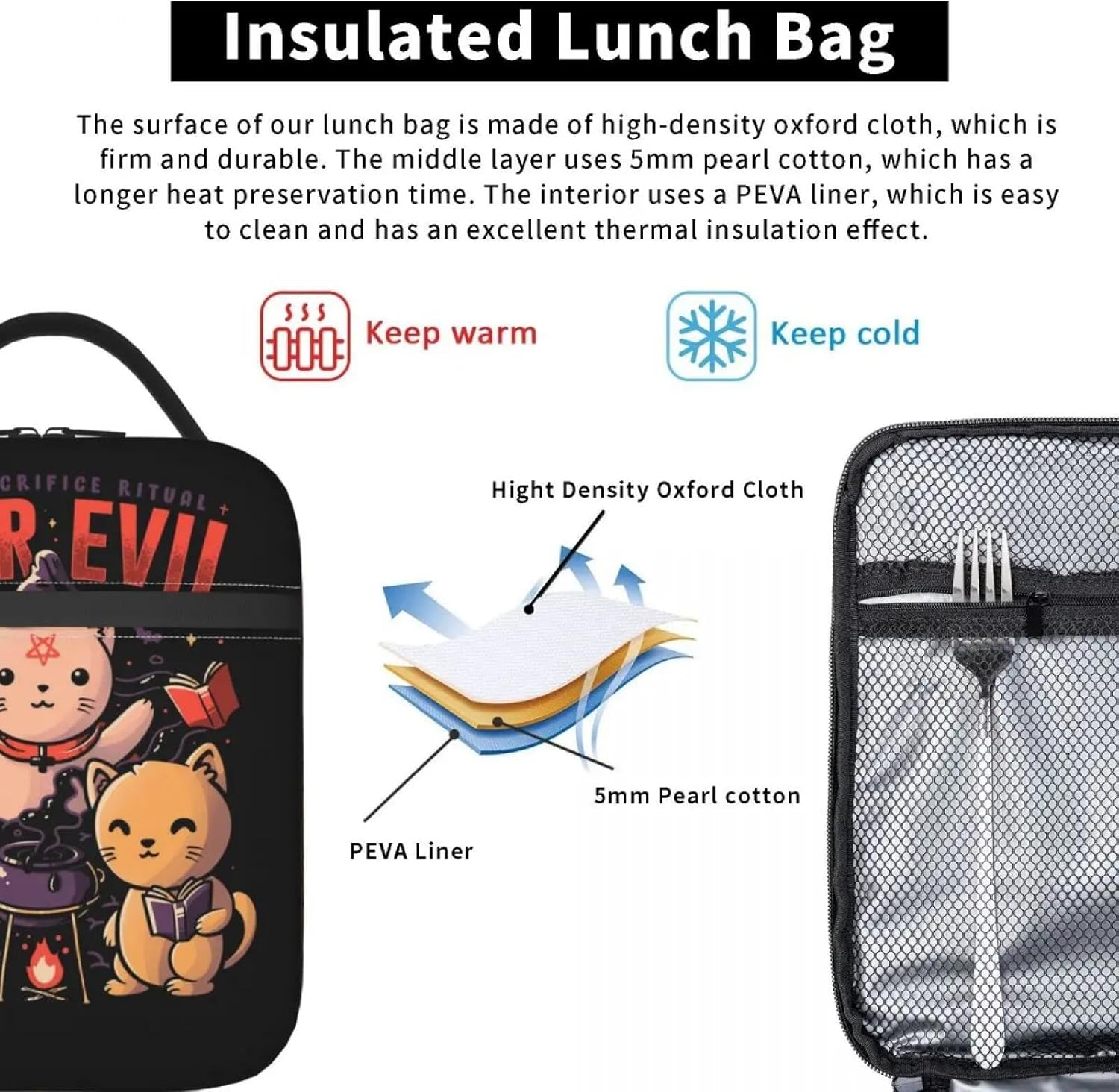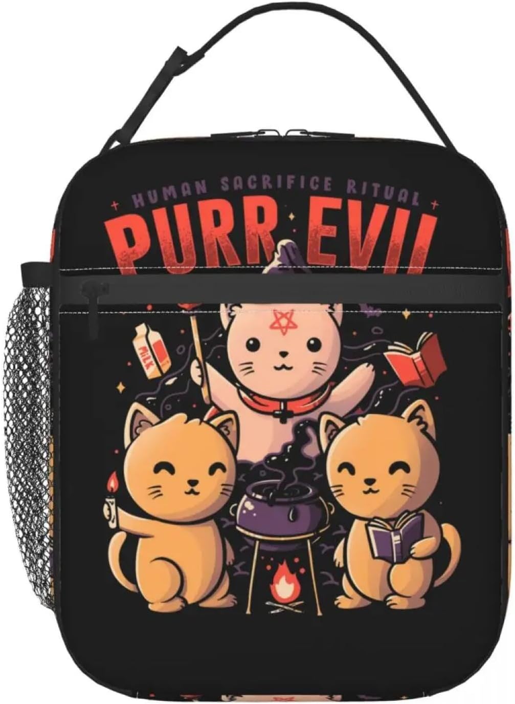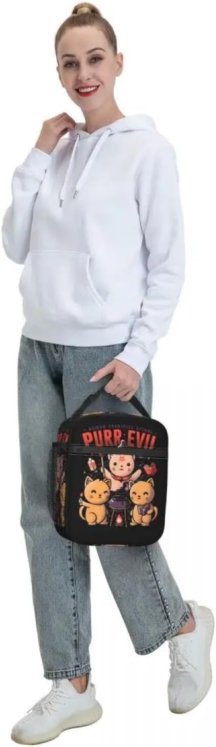 Purr Evil Magic Cat Borse da Pranzo Isolate per Le Donne Satanic Gothic Witch Resuable Thermal Cooler Bento Box School