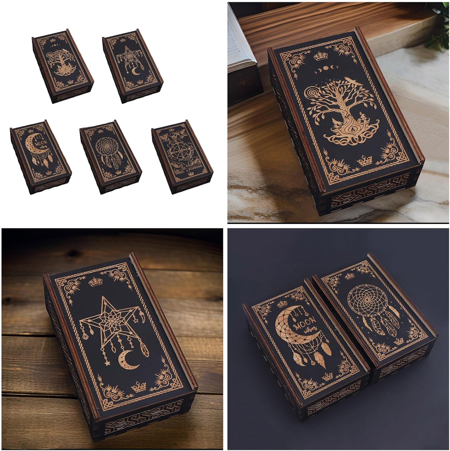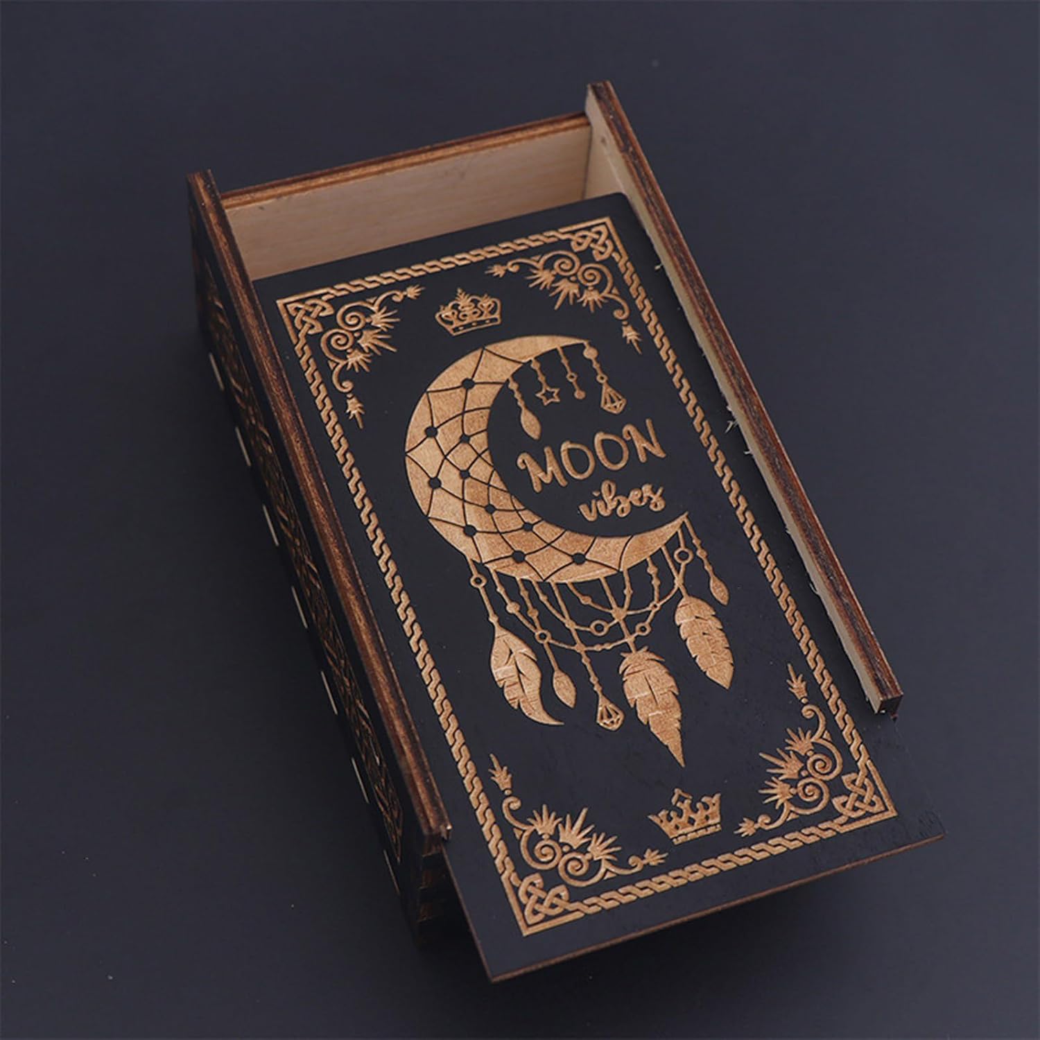 Mantieni i tuoi tarocchi e carte da gioco organizzati con questa scatola di legno. Realizzato in legno, questo contenitore garantisce un uso prolungato. Adatto per gli appassionati di tarocchi, giocatori di carte, viaggiatori e acquirenti, questa scatola di legno si rivolge a vari utenti. Che tu stia organizzando una riunione, un viaggio o cerchi unici, questa scatola è molto pratica. Di piccole dimensioni e semplice, questa scatola di legno conserva saldamente la tua carta aggiungendo stile a qualsiasi ambiente.