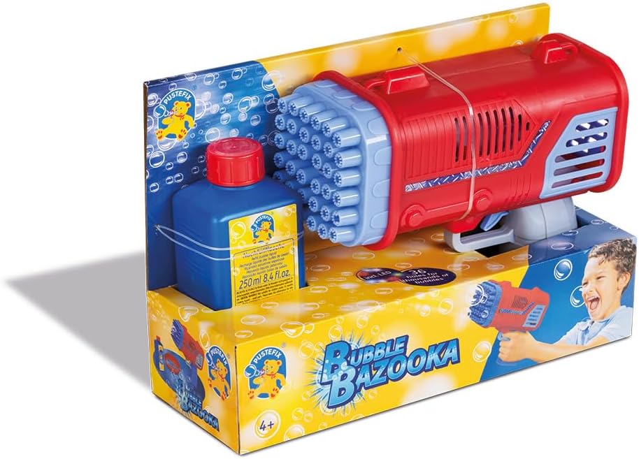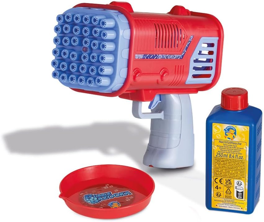 MASSIMO DIVERTIMENTO CON LE BOLLE DI SAPONE: Premendo un pulsante, il Bubble Bazooka crea gigantesche onde di centinaia di bolle di sapone: un vero highlight per feste e compleanni dei bambini. 36 UGELLI PER EFFETTI MOZZAFIATO: Con il gran numero di ugelli per bolle, intere stanze o giardini possono essere trasformati in un paesaggio di bolle di sapone. ILLUMINAZIONE LED INTEGRATA: La luce LED integrata crea magici effetti luminosi che fanno brillare le bolle di sapone in diversi colori. INCLUDE LIQUIDO PER BOLLE DI SAPONE DA 250 ML: subito pronto: basta riempire il liquido e iniziare! GIOCATTOLO DI TENDENZA PER TUTTE LE ETÀ: Che si tratti di bambini o adulti, il Bubble Bazooka crea eccitazione ovunque. MASSIMO DIVERTIMENTO CON LE BOLLE DI SAPONE: Premendo un pulsante, il Bubble Bazooka crea gigantesche onde di centinaia di bolle di sapone: un vero highlight per feste e compleanni dei bambini. 36 UGELLI PER EFFETTI MOZZAFIATO: Con il gran numero di ugelli per bolle, intere stanze o giardini possono essere trasformati in un paesaggio di bolle di sapone.