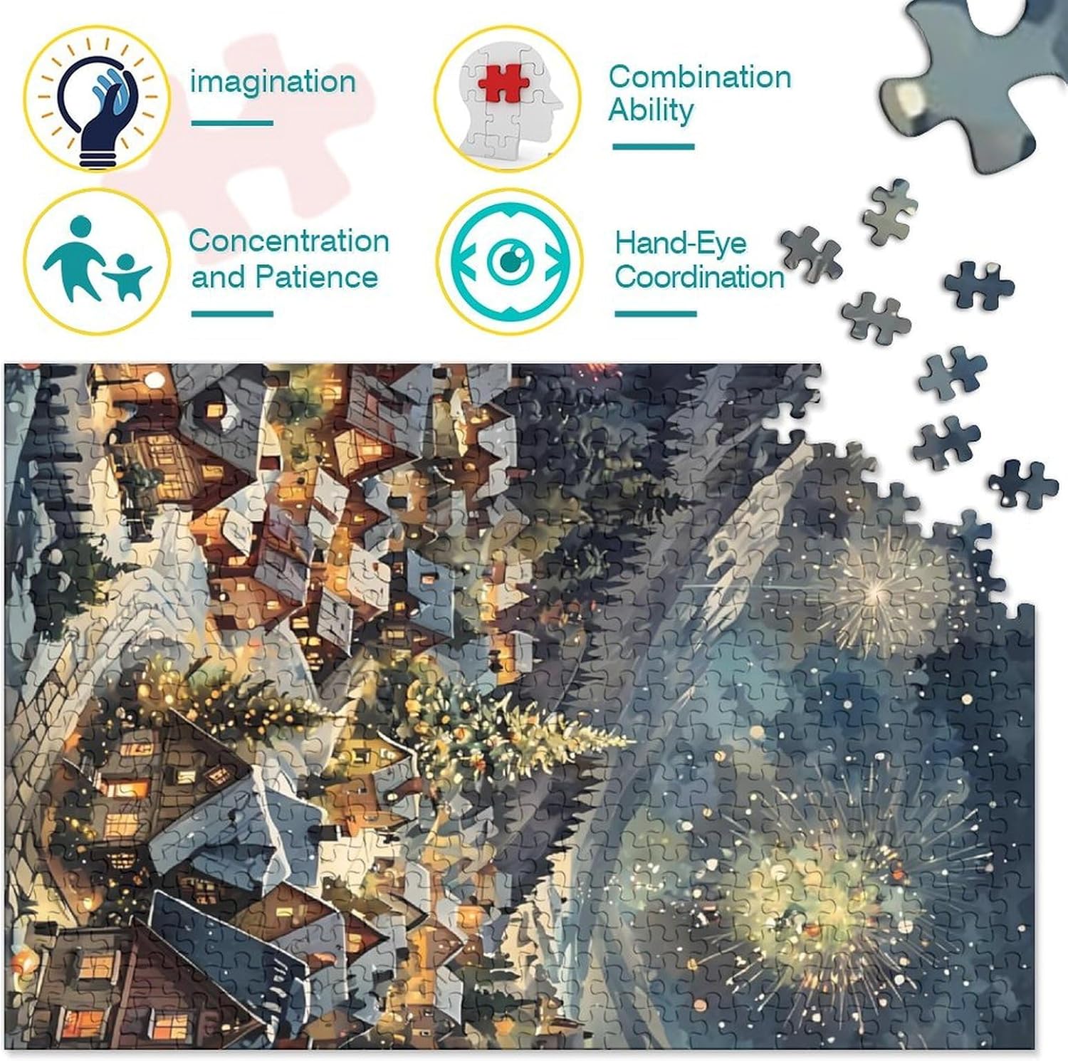 🌸GIOCHI PER ADULTI: una sfida emozionante da regalare a tutti li appassionati di puzzle e amanti dell'arte, ideale per uomo, donna o ragazzi; i puzzle aiutano a esercitare la memoria, migliorano la concentrazione e stimolano l'intuizione 🌸QUALITÀ PREMIUM: il massimo del divertimento con prodotti di altissima qualità in termini di materiali, motivi e design; realizzati in legno tagliati con fustelle fatte a mano, per un risultato impeccabile 🌸Buon regalo: il Christmas Eve puzzle finito misura 70x50cm/1000pcs una volta completato. I migliori regali per ragazzi e ragazze dai 14 anni in su per compleanni o festività (Natale, Halloween, Ringraziamento, ecc.) 🌸Concediti una piacevole pausa relax! La nostra linea di puzzle da Christmas 1000 pezzi è il regalo perfetto per chi ama ritagliarsi un momento di svago e di relax mettendo alla prova le proprie abilità logiche e di concentrazione 🌸I nostri Puzzle ti offrono un'ampia scelta d'immagini capace di soddisfare i gusti di tutti: grazie alla qualità dei materiali riciclati, la robustezza e resistenza dei singoli pezzi insieme alla brillantezza dei colori, ti garantiamo un risultato impeccabile e privo di riflessi