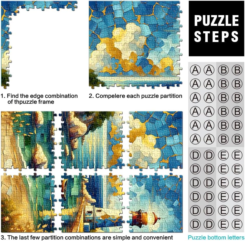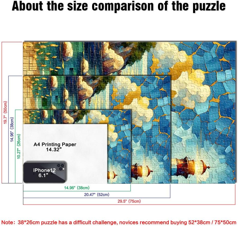 Puzzle 1000 pezzi per adolescenti Arte Kintsugi del faro Il puzzle è confezionato in un sacchetto con coulisse e viene fornito con una bella scatola regalo e un poster regalo a grandezza naturale. Dimensioni finali 75x50cm 【Alta qualità】: Questo puzzle da 1000 pezzi è realizzato in cartone riciclato di alta qualità. Il puzzle adotta una tecnologia avanzata di produzione di puzzle e la carta è più spessa, più resistente e non facile da deformare. 【Design unico】: Utilizziamo una tecnologia di taglio di precisione per garantire che ogni pezzo del puzzle si adatti perfettamente senza polvere. Ogni pezzo del puzzle è stampato con inchiostro antiriflesso e atossico. La guida per le lettere sul retro del puzzle fornisce un ulteriore aiuto e rende il puzzle più facile da risolvere. 【Rilassamento e sollievo dallo stress】: I puzzle artistici sono un modo prezioso per godersi del tempo di qualità a casa. Assemblare un puzzle da 1000 pezzi può migliorare l'umore, potenziare le capacità cognitive e migliorare la memoria a breve termine. 【Supporto】 Se riscontri che al tuo puzzle manca un pezzo, non esitare a contattarci e lo sostituiremo con un puzzle con la stessa immagine senza domande o condizioni.
