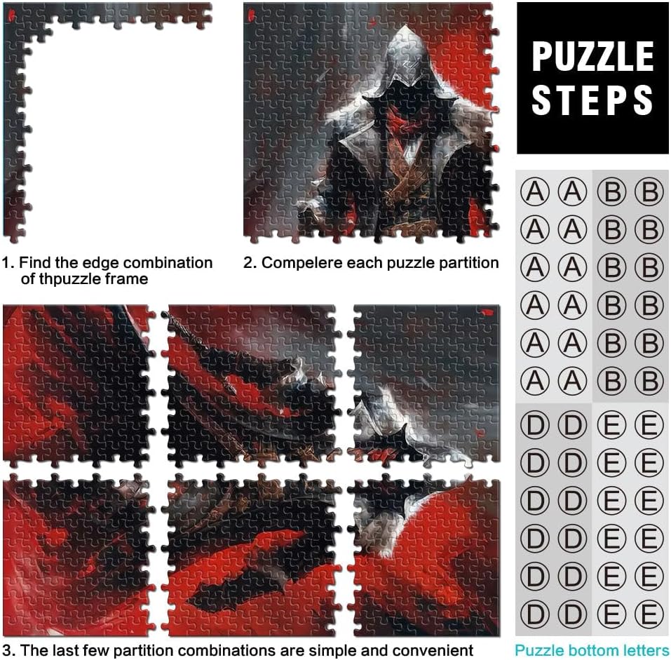 Puzzle 1000 pezzi per adolescenti Guerriero oscuro degli assassini Il puzzle è confezionato in un sacchetto con coulisse e viene fornito con una bella scatola regalo e un poster regalo a grandezza naturale. Dimensioni finali 50x70cm 【Materiale di alta qualità】Realizzato in legno riciclabile di alta qualità, atossico, inodore e privo di polvere. La tecnologia di taglio di precisione garantisce che ogni pezzo del puzzle si adatti perfettamente, offrendoti la migliore esperienza. 【Design unico】: Utilizziamo una tecnologia di taglio di precisione per garantire che ogni pezzo del puzzle si adatti perfettamente senza polvere. Ogni pezzo del puzzle è stampato con inchiostro antiriflesso e atossico. La guida per le lettere sul retro del puzzle fornisce un ulteriore aiuto e rende il puzzle più facile da risolvere. 【Rilassamento e sollievo dallo stress】: I puzzle artistici sono un modo prezioso per godersi del tempo di qualità a casa. Assemblare un puzzle da 1000 pezzi può migliorare l'umore, potenziare le capacità cognitive e migliorare la memoria a breve termine. 【Supporto】 Se riscontri che al tuo puzzle manca un pezzo, non esitare a contattarci e lo sostituiremo con un puzzle con la stessa immagine senza domande o condizioni.