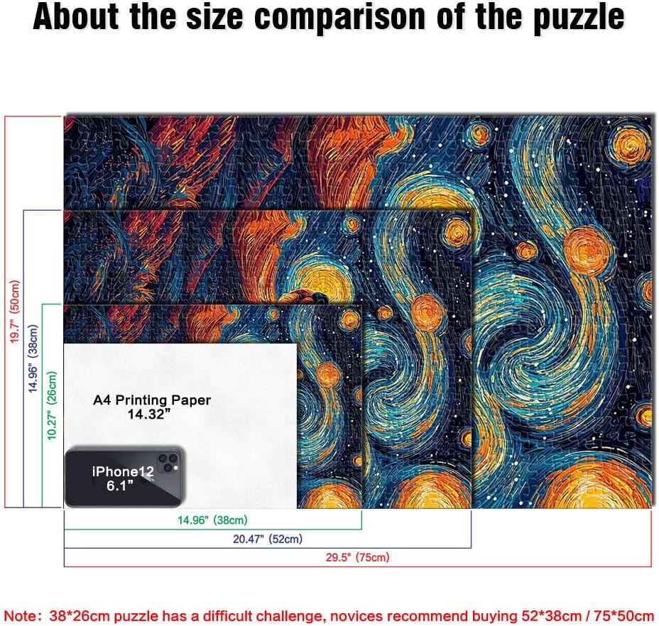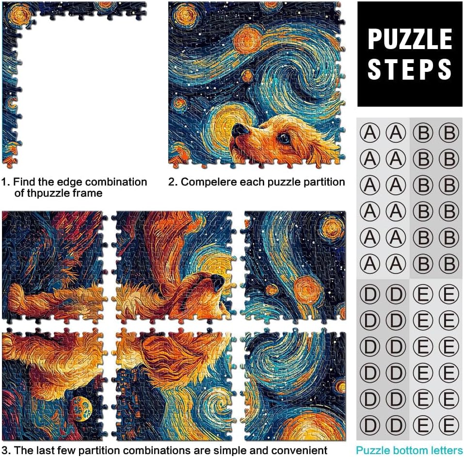 Puzzle 1000 pezzi per adolescenti Notte stellata per cani Il puzzle è confezionato in un sacchetto con coulisse e viene fornito con una bella scatola regalo e un poster regalo a grandezza naturale. Dimensioni finali 38x52cm 【Materiale di alta qualità】Realizzato in legno riciclabile di alta qualità, atossico, inodore e privo di polvere. La tecnologia di taglio di precisione garantisce che ogni pezzo del puzzle si adatti perfettamente, offrendoti la migliore esperienza. 【Design unico】: Utilizziamo una tecnologia di taglio di precisione per garantire che ogni pezzo del puzzle si adatti perfettamente senza polvere. Ogni pezzo del puzzle è stampato con inchiostro antiriflesso e atossico. La guida per le lettere sul retro del puzzle fornisce un ulteriore aiuto e rende il puzzle più facile da risolvere. 【Rilassamento e sollievo dallo stress】: I puzzle artistici sono un modo prezioso per godersi del tempo di qualità a casa. Assemblare un puzzle da 1000 pezzi può migliorare l'umore, potenziare le capacità cognitive e migliorare la memoria a breve termine. 【Supporto】 Se riscontri che al tuo puzzle manca un pezzo, non esitare a contattarci e lo sostituiremo con un puzzle con la stessa immagine senza domande o condizioni.