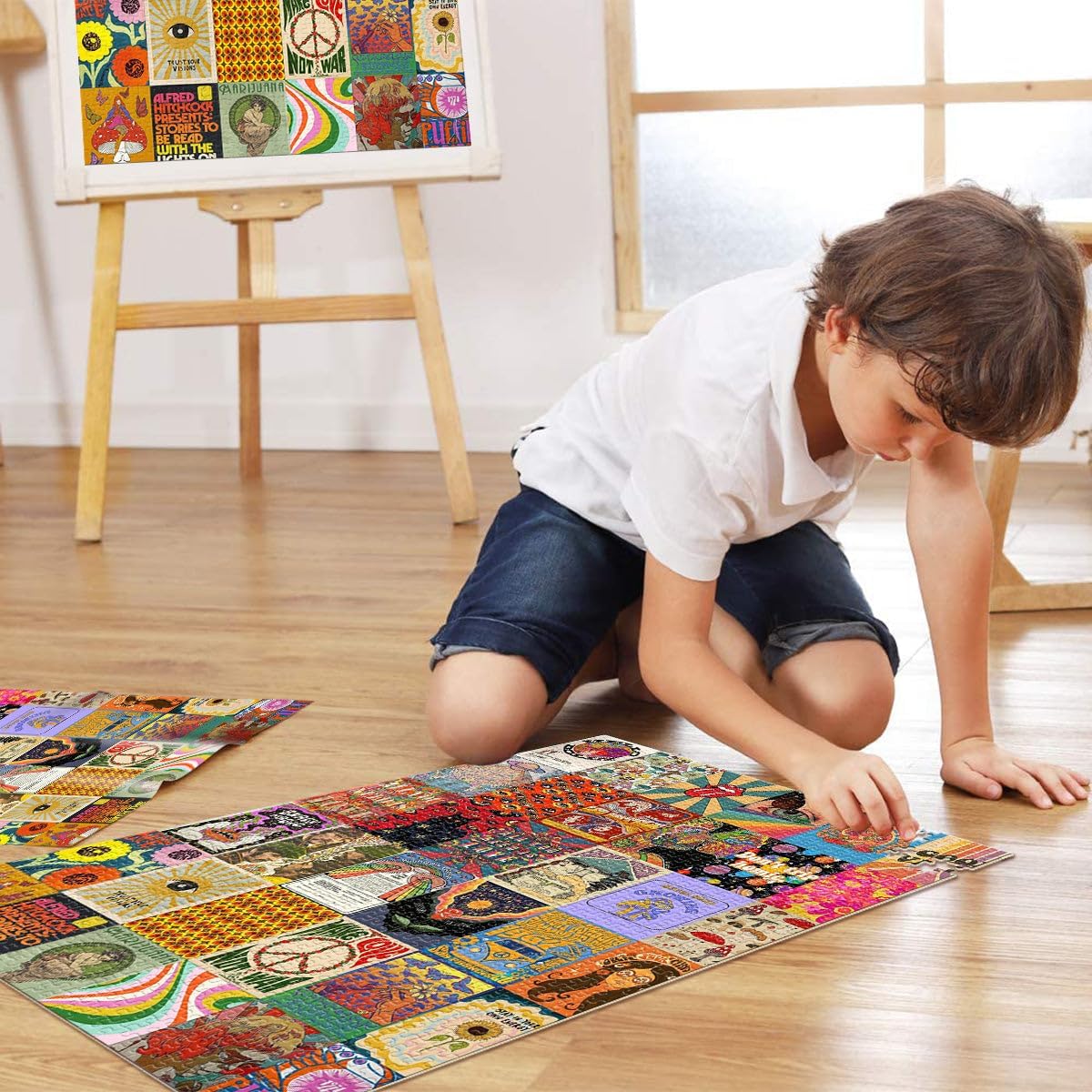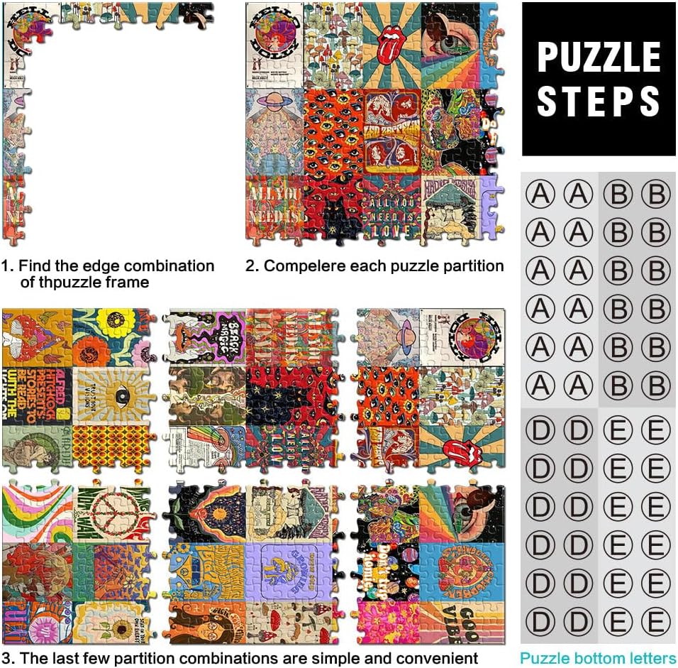 Puzzle 1000 pezzi per adulti arte patchwork hippie Fatto di legno Adatto a partire dai 14 anni Gioco di decorazione della casa Buon regalo misurare:50x75cm