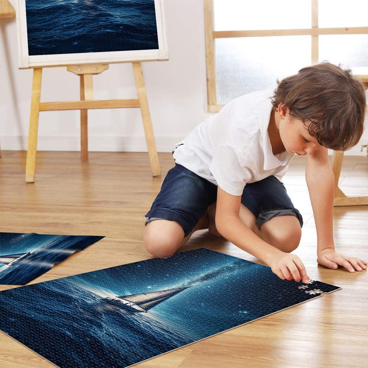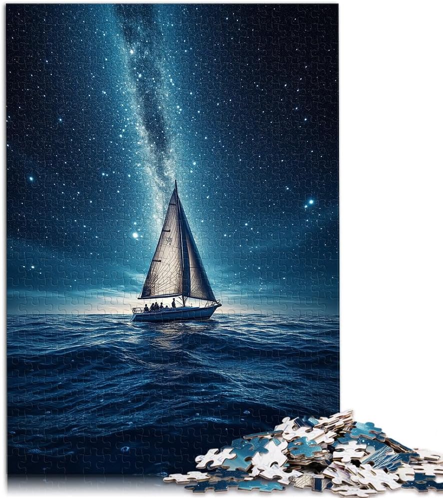 Puzzle 1000 pezzi per adulti Barca a vela Via Lattea Fatto di legno Adatto a partire dai 14 anni Giocattolo educativo per l'apprendimento regali per amici e familiari misurare:50x75cm