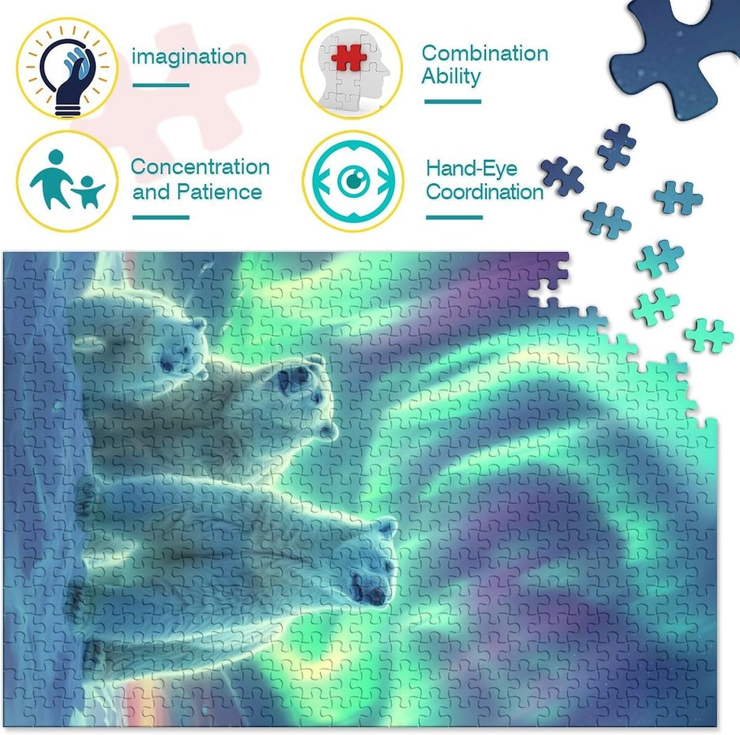 🌸GIOCHI PER ADULTI: una sfida emozionante da regalare a tutti li appassionati di puzzle e amanti dell'arte, ideale per uomo, donna o ragazzi; i puzzle aiutano a esercitare la memoria, migliorano la concentrazione e stimolano l'intuizione 🌸QUALITÀ PREMIUM: il massimo del divertimento con prodotti di altissima qualità in termini di materiali, motivi e design; realizzati in legno tagliati con fustelle fatte a mano, per un risultato impeccabile 🌸Buon regalo: il Northern Lights puzzle finito misura 70x50cm/1000pcs una volta completato. I migliori regali per ragazzi e ragazze dai 14 anni in su per compleanni o festività (Natale, Halloween, Ringraziamento, ecc.) 🌸Concediti una piacevole pausa relax! La nostra linea di puzzle da Polar Bear 1000 pezzi è il regalo perfetto per chi ama ritagliarsi un momento di svago e di relax mettendo alla prova le proprie abilità logiche e di concentrazione 🌸I nostri Puzzle ti offrono un'ampia scelta d'immagini capace di soddisfare i gusti di tutti: grazie alla qualità dei materiali riciclati, la robustezza e resistenza dei singoli pezzi insieme alla brillantezza dei colori, ti garantiamo un risultato impeccabile e privo di riflessi