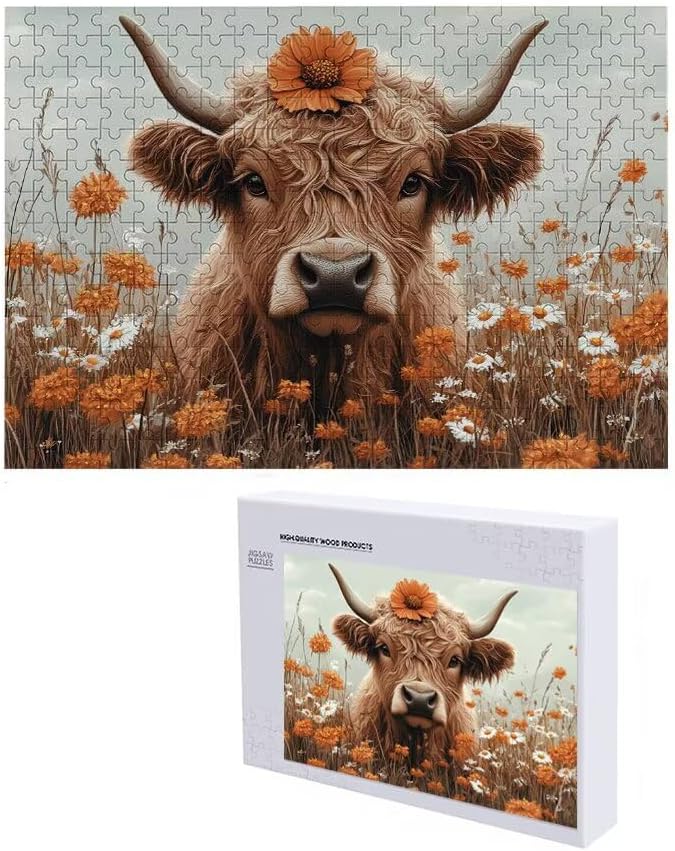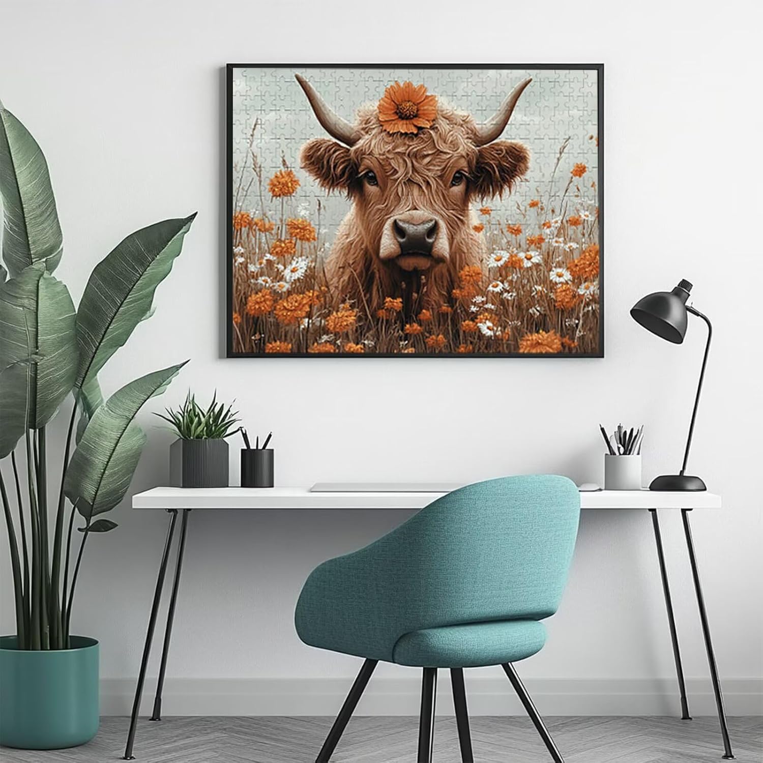 Puzzle 1000 Pieces Bovini delle Highlands Gioco Educativo Intellettuale Migliora La Concentrazione E Creatività, Puzzle Adulti E Ragazzi Da 14 Anni Compact Box Con Poster Incluso Idea Regalo Donna E-8