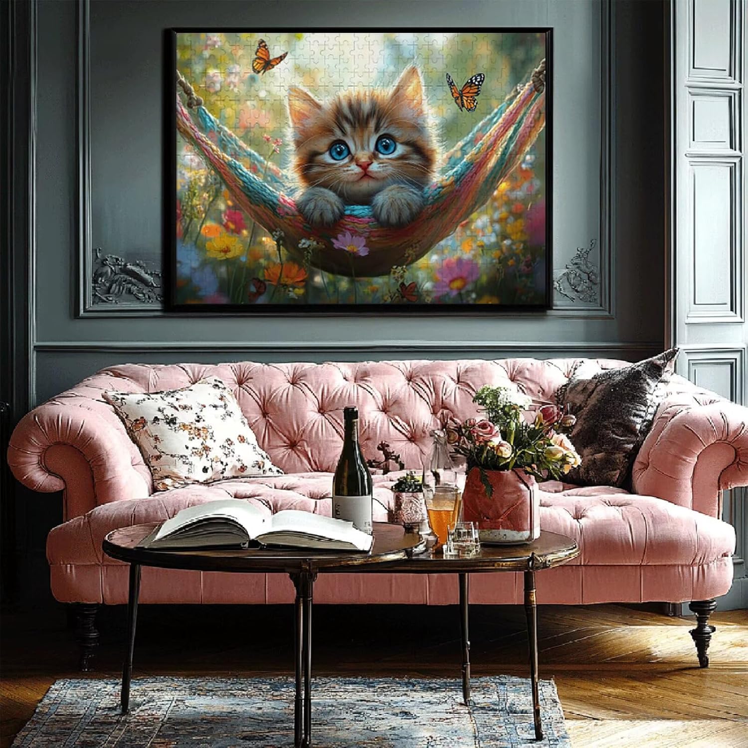 Puzzle 1500 Pieces Gatto farfalla Gioco Educativo Intellettuale Migliora La Concentrazione E Creatività, Puzzle Adulti E Ragazzi Da 14 Anni Compact Box Con Poster Incluso Idea Regalo Uomo E Donna C-8