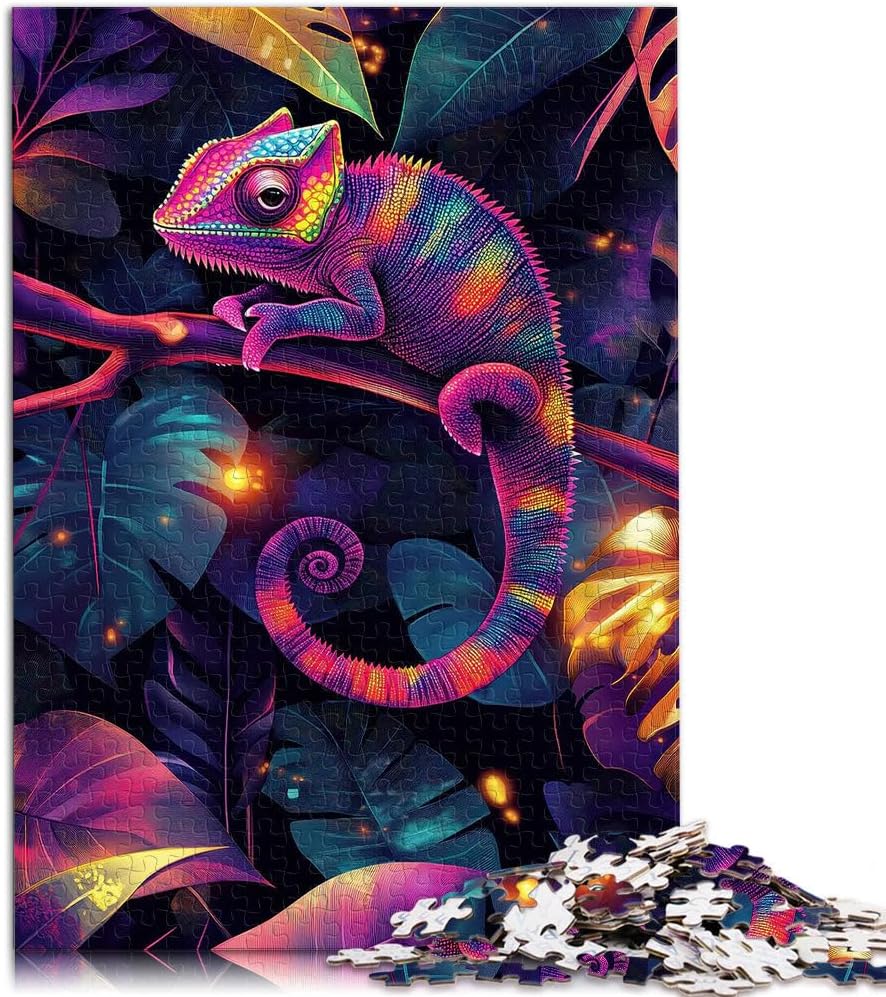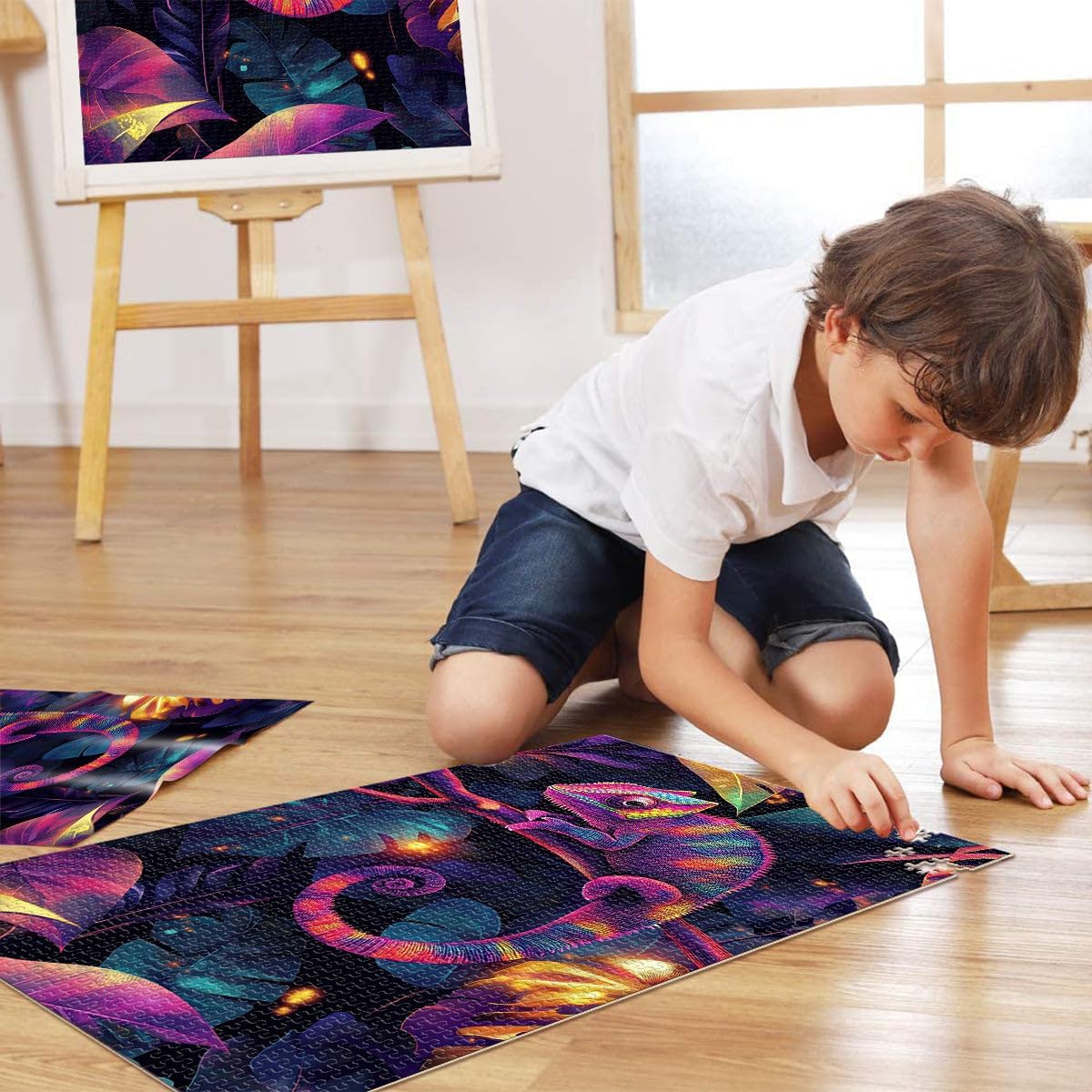 Puzzle 2000 pezzi per adulti Camaleonte neon nella giungla Fatto di cartone per età 14+ Decorazione artistica per la casa grande regalo misurare:70x100cm