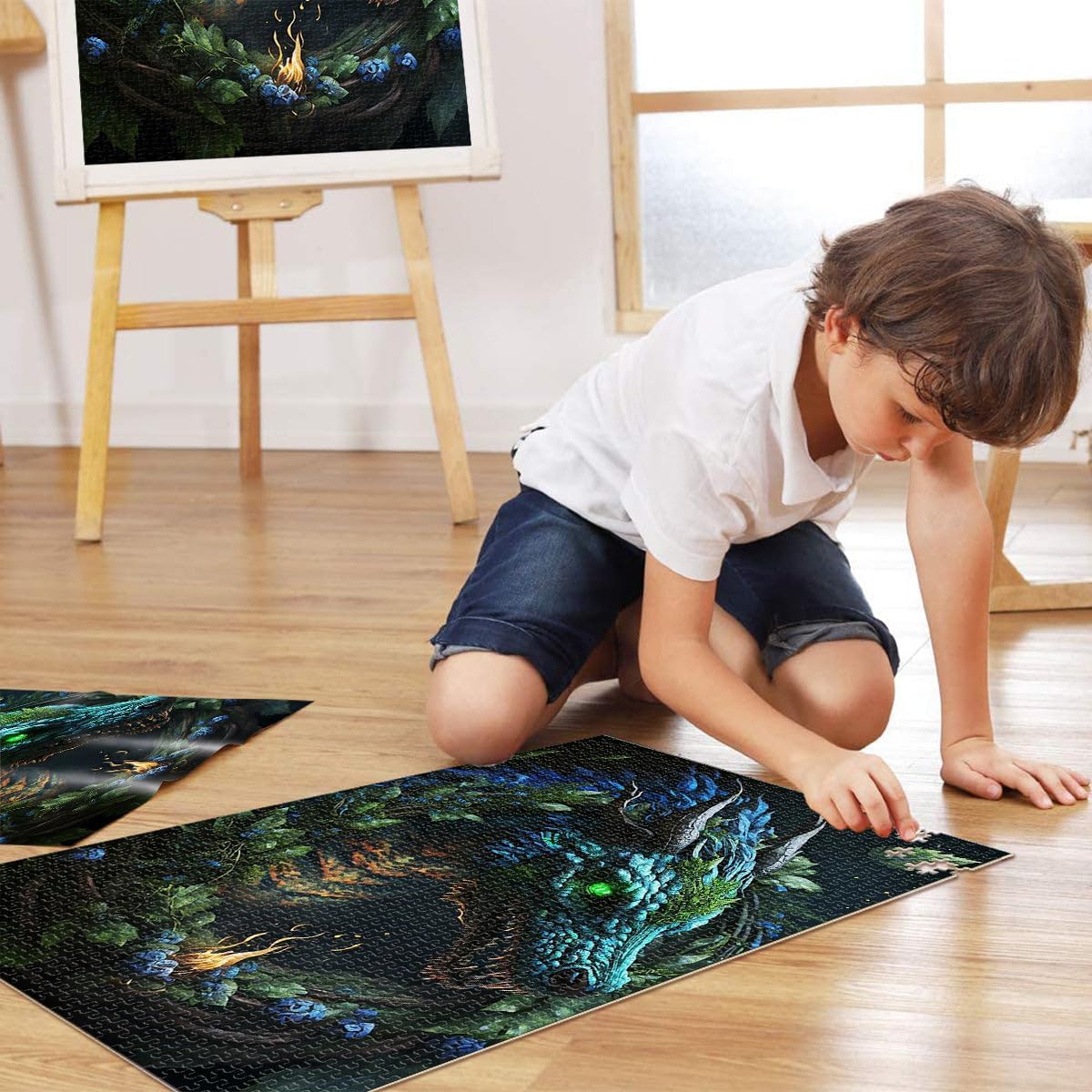 Puzzle 2000 pezzi per adulti Dipingere il drago verde Fatto di cartone Adatto a persone dai 14 anni in su Migliorare la memoria regali per amici e familiari misurare:70x100cm