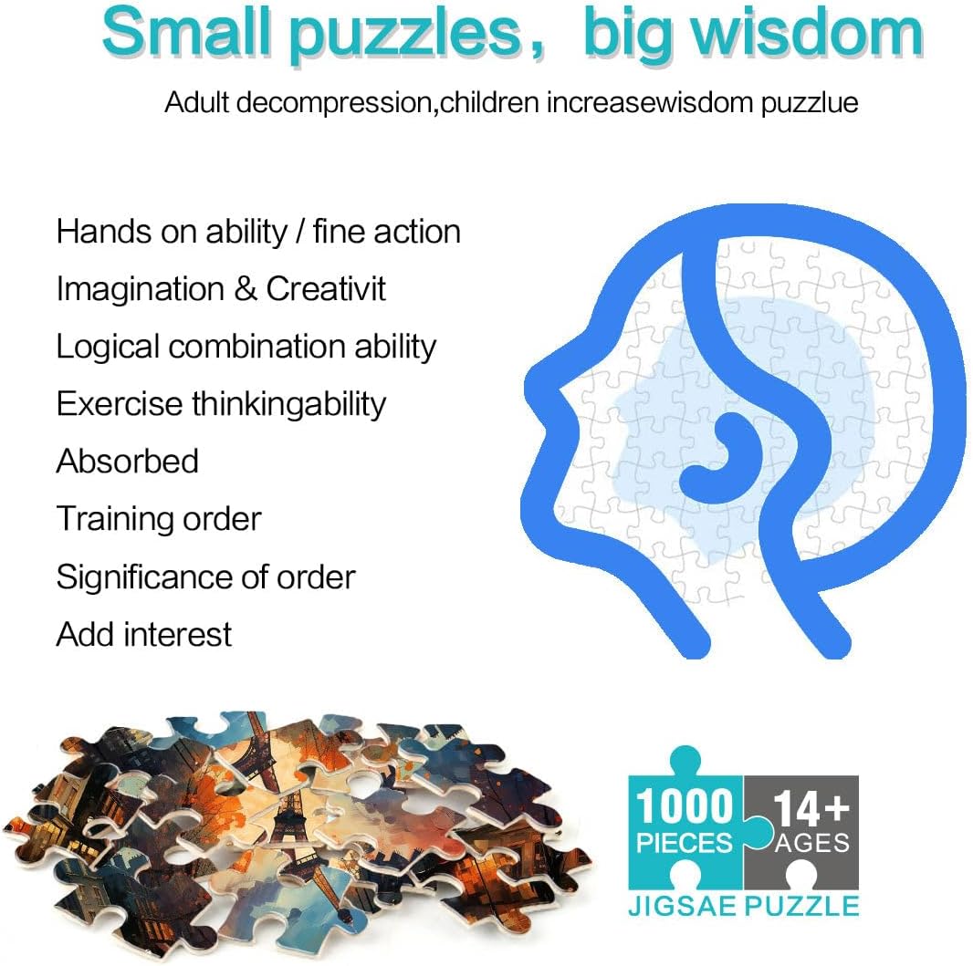 Puzzle 2000 pezzi per adulti Parigi al tramonto Fatto di cartone per età 14+ Giocattoli per la decorazione della casa Regalo divertente misurare:70x100cm
