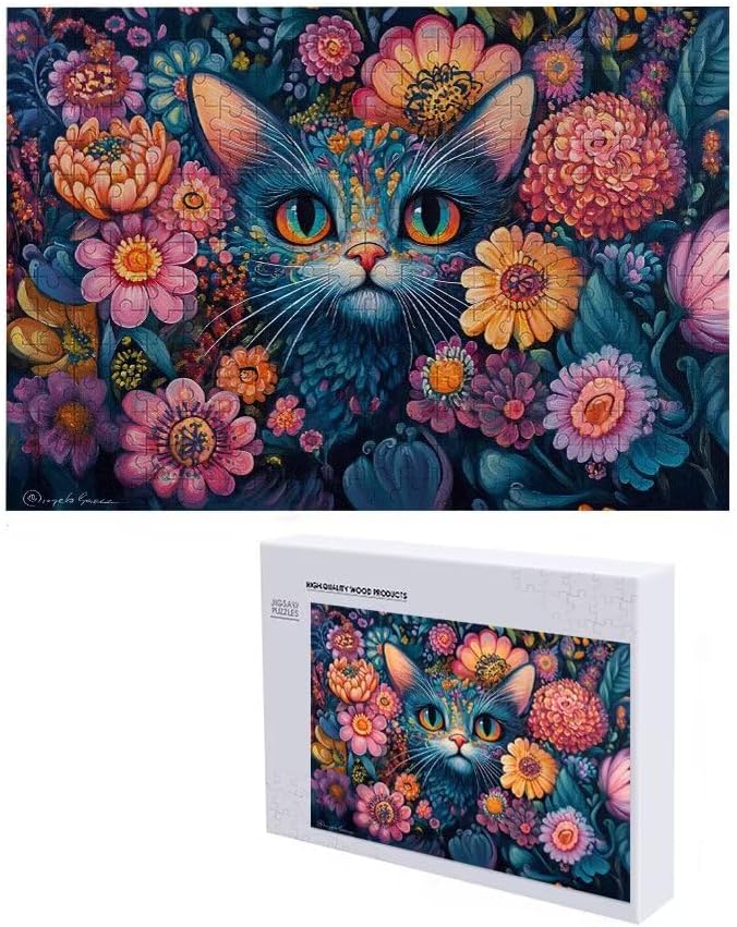 Puzzle 2000 Pieces Fiori e gatti Puzzle Impossibili Arte Giocattolo Intellettuale Adatto per Adulti O Bambini Sopra I 14 Anni, Calma La Tua Mente Riduce Lo Stress Di Lavoro Idea Regalo Uomo/Donna G-5
