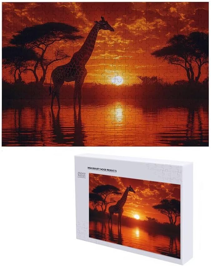 Puzzle 2000 Pieces Giraffa al tramonto Gioco Educativo Intellettuale Migliora La Concentrazione E Creatività, Puzzle Adulti E Ragazzi Da 14 Anni Compact Box Con Poster Incluso Idea Regalo Donna E-9