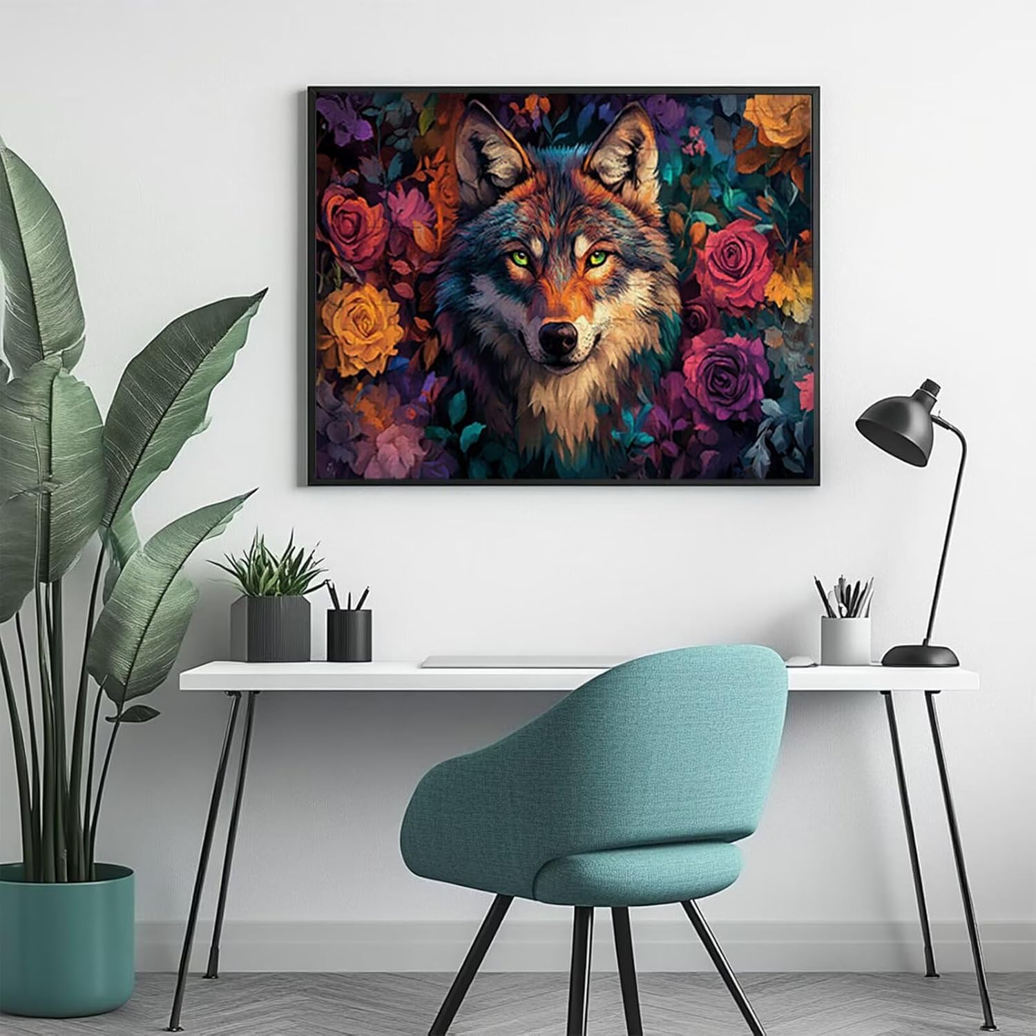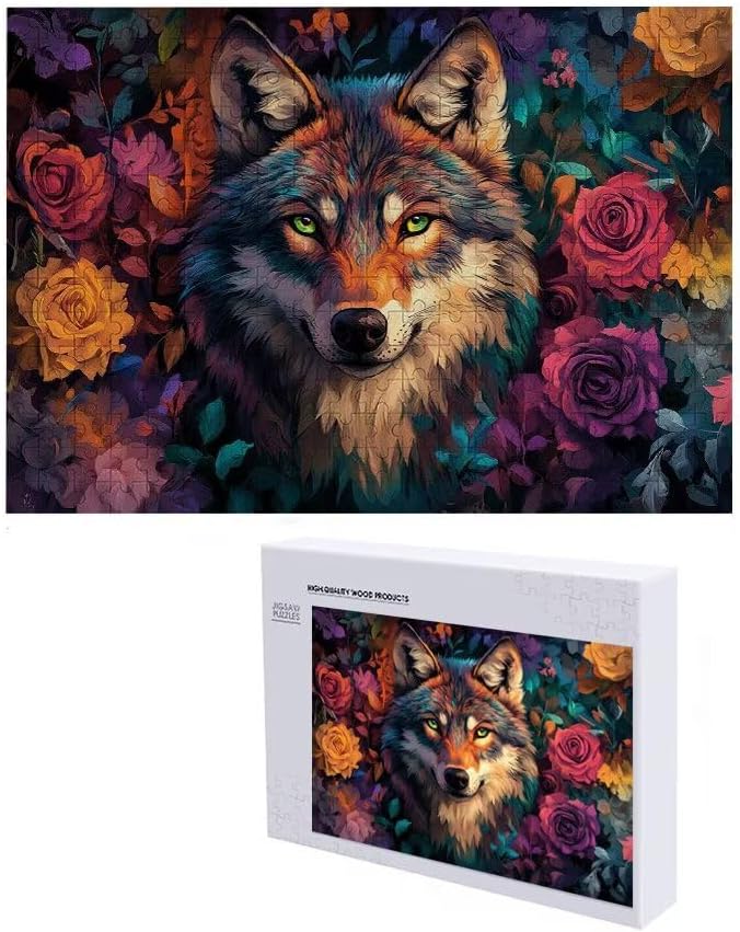 Puzzle 2000 Pieces Lupo e fiore Gioco Educativo Intellettuale Migliora La Concentrazione E La Creatività, Puzzle Adulti E Ragazzi Da 14 Anni Compact Box Con Poster Incluso Idea Regalo Uomo E Donna U-1